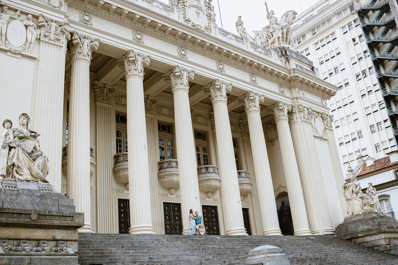 Em janeiro deste ano o Gabriel reuniu toda família para um almoço no rancho e fez o pedido. Ela disse sim ! Então começaram os preparativos para que este dia se tornasse realidade. A noiva nos procurou em Março, já nos conhecíamos por termos realizado o casamento de duas primas dela anteriormente. Ai começamos a idealizar cada detalhe inclusive o ensaio pré, que foi feito no Centro do Rio, e ficou lindíssimo.