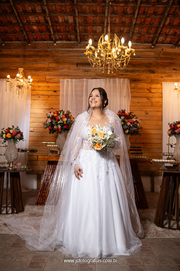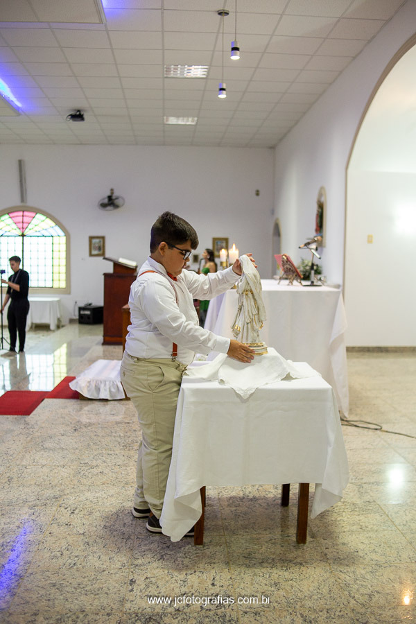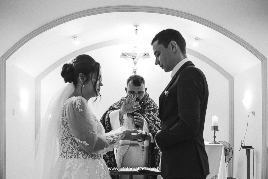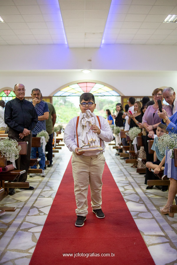 O irmão da noiva entrou com a imagem da Sagrada Família, trazendo ainda mais significado e emoção para o momento.