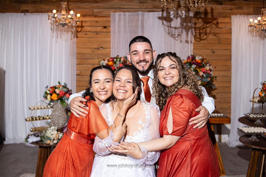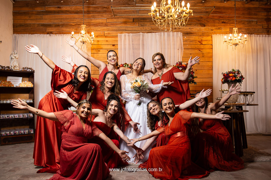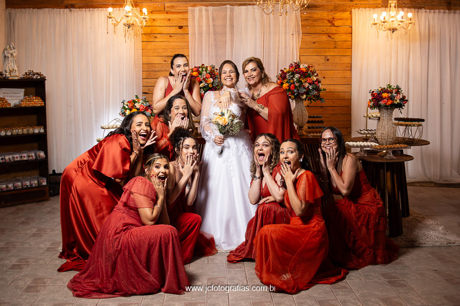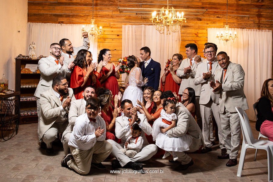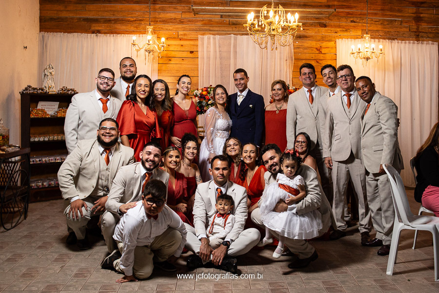 E então fomos para o espaço de festas, iniciamos as fotos protocolares, com o casal, seus pais e padrinhos que foram nove casais.