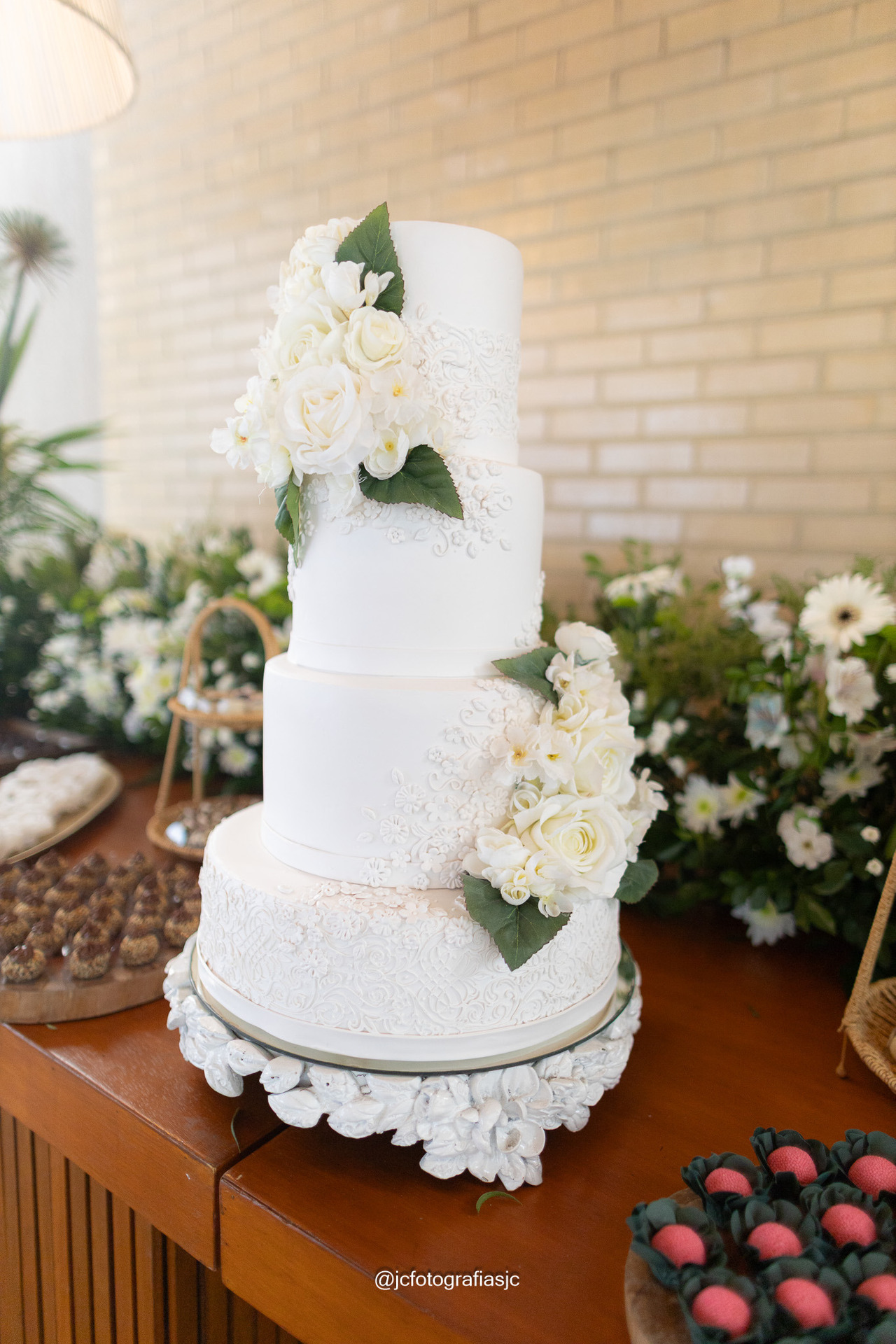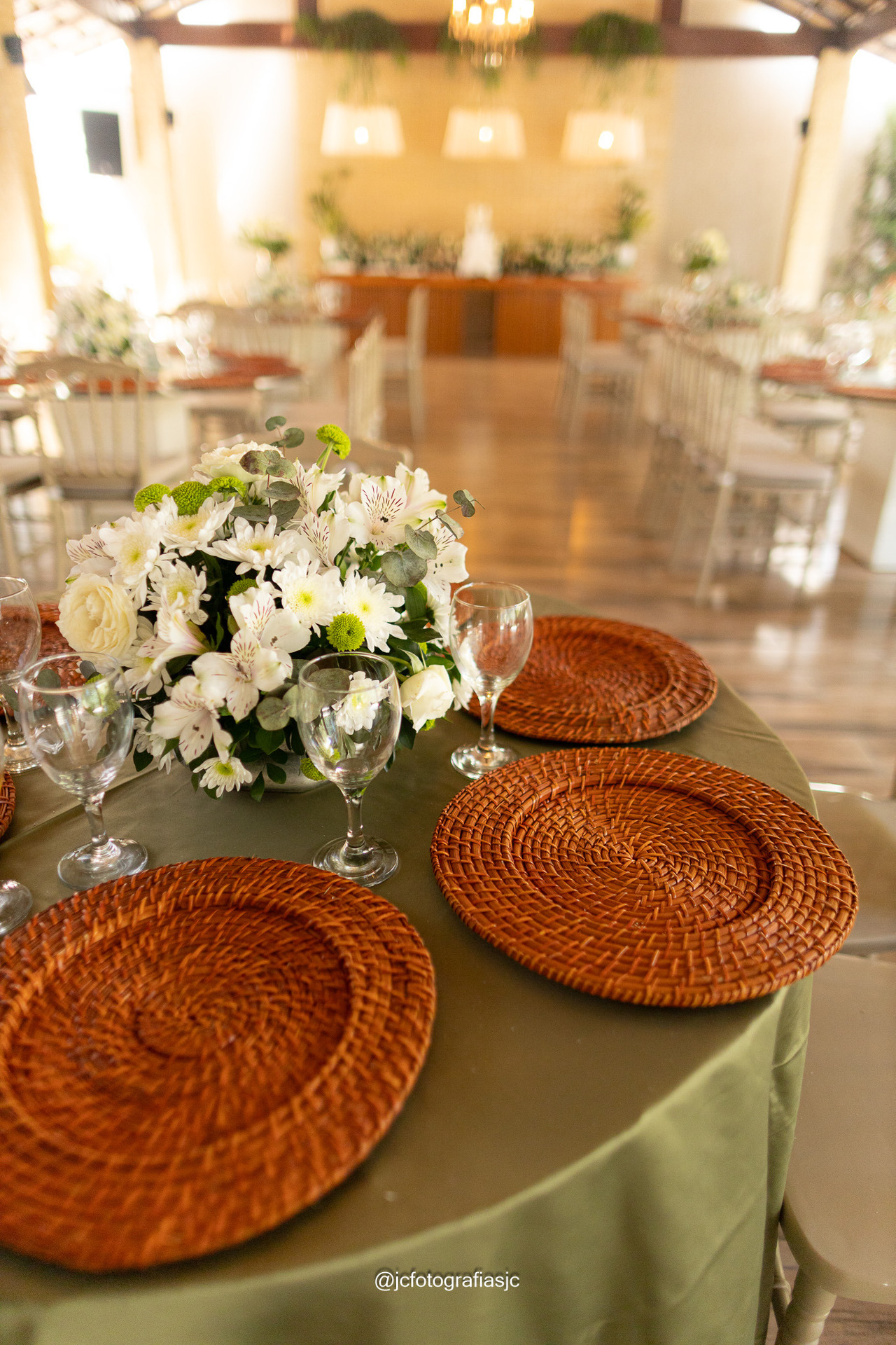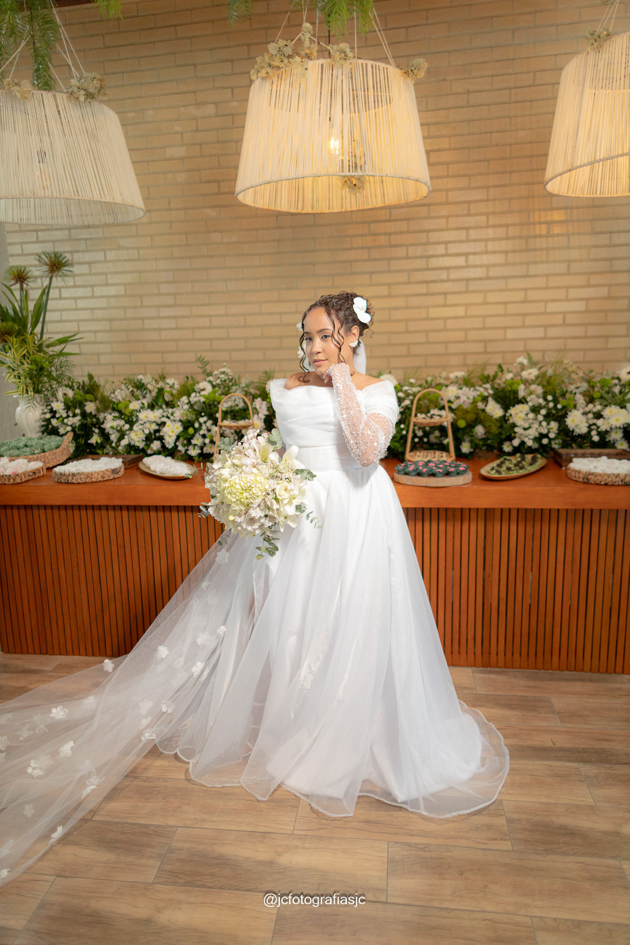 Antes mesmo de vestir o vestido, Ana fez questão de descer e ver de perto a decoração que estava encantadora. E ali descobrimos um detalhe que fez tudo ainda mais especial: ela mesma colocou a mão na massa. A papelaria do casamento foi toda feita por ela, com um cuidado que se via em cada pedacinho. Alguns doces também foram preparados por suas mãos, um toque pessoal que transformou tudo em ainda mais amor.