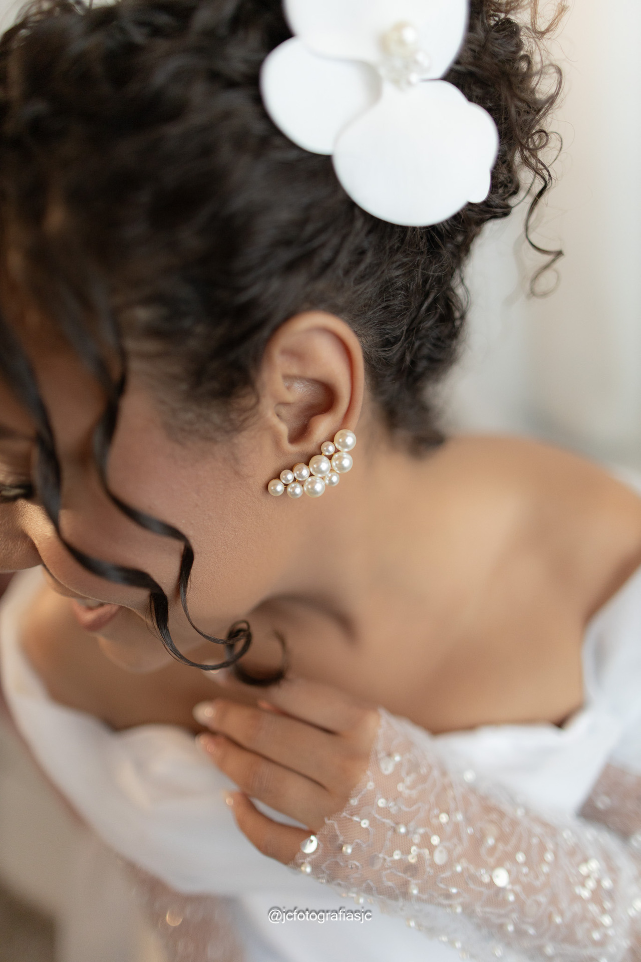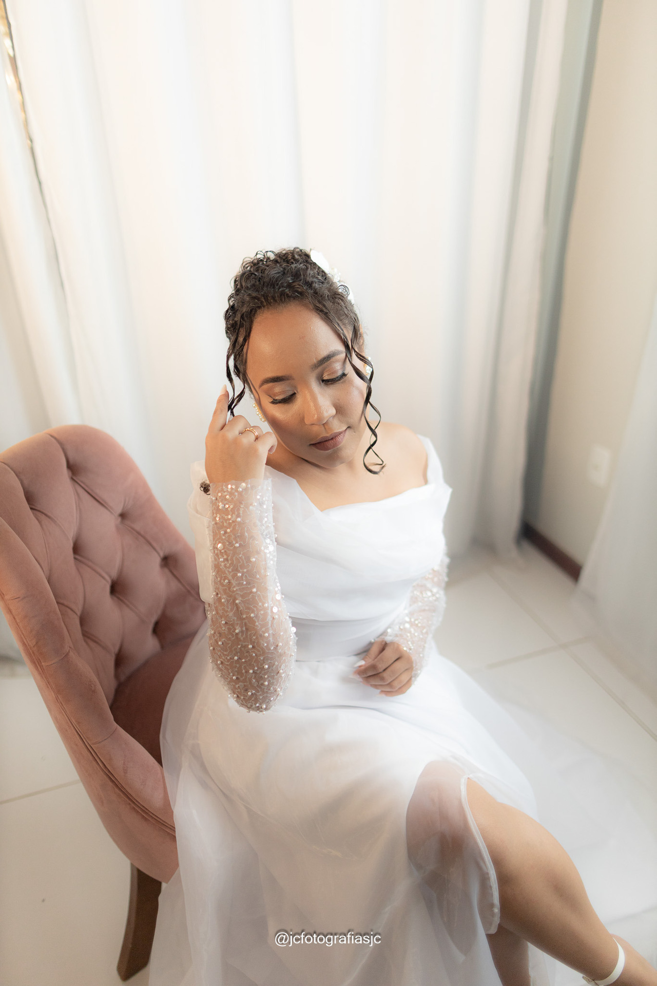 O making of aconteceu em clima de aconchego e cumplicidade. Ana Beatriz estava acompanhada de sua mãe, e foi com ela que vivemos os primeiros momentos emocionantes: os acessórios cuidadosamente escolhidos, os toques finais no penteado, e aquele carinho de mãe e filha que já dizia muito sobre o dia que estava por vir.