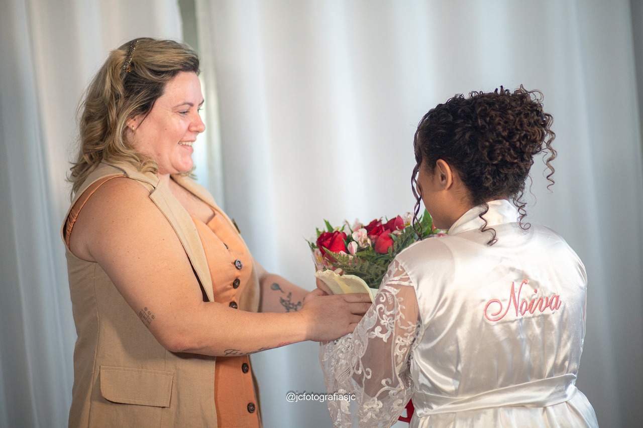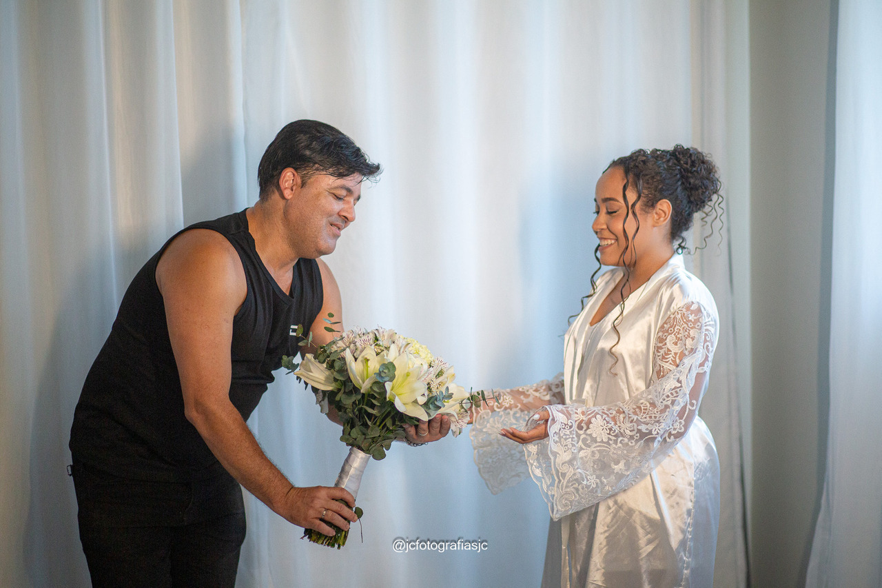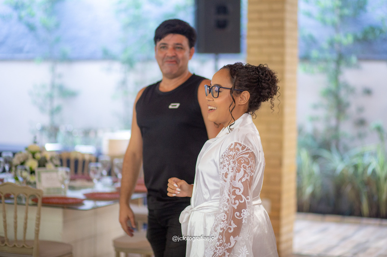 O momento em que recebeu o buquê, a reação do pai, ao vê-la pronta, que nos arrancou suspiros e sorrisos emocionados. Um daqueles instantes que ficam guardados para sempre. Ele declarou seu amor e orgulho pela filha que é e a abençoou.