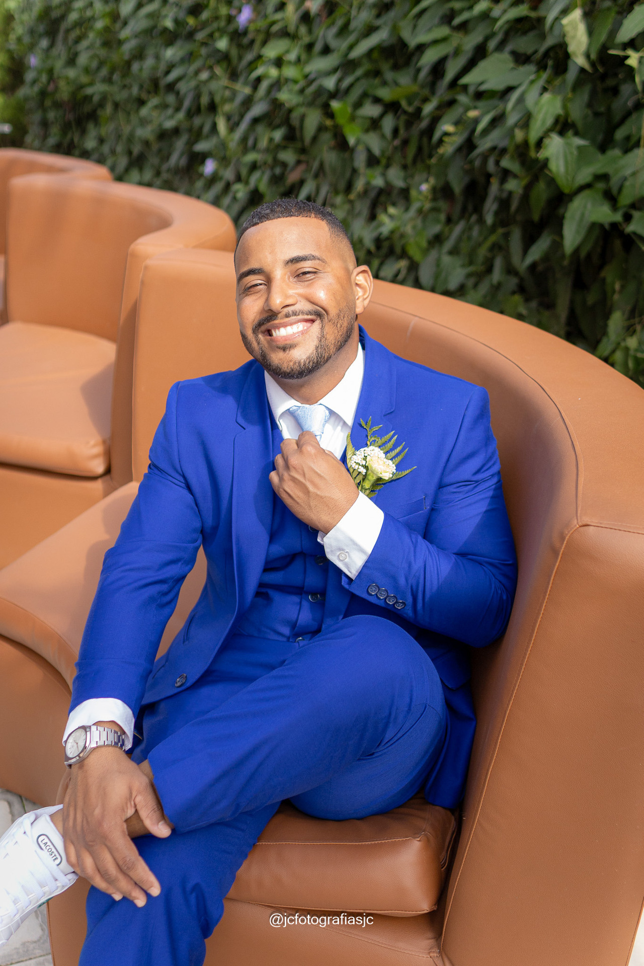 Antes de começar a cerimônia o Jonathan também fez algumas fotos com o noivo, que estava esbanjando alegria.