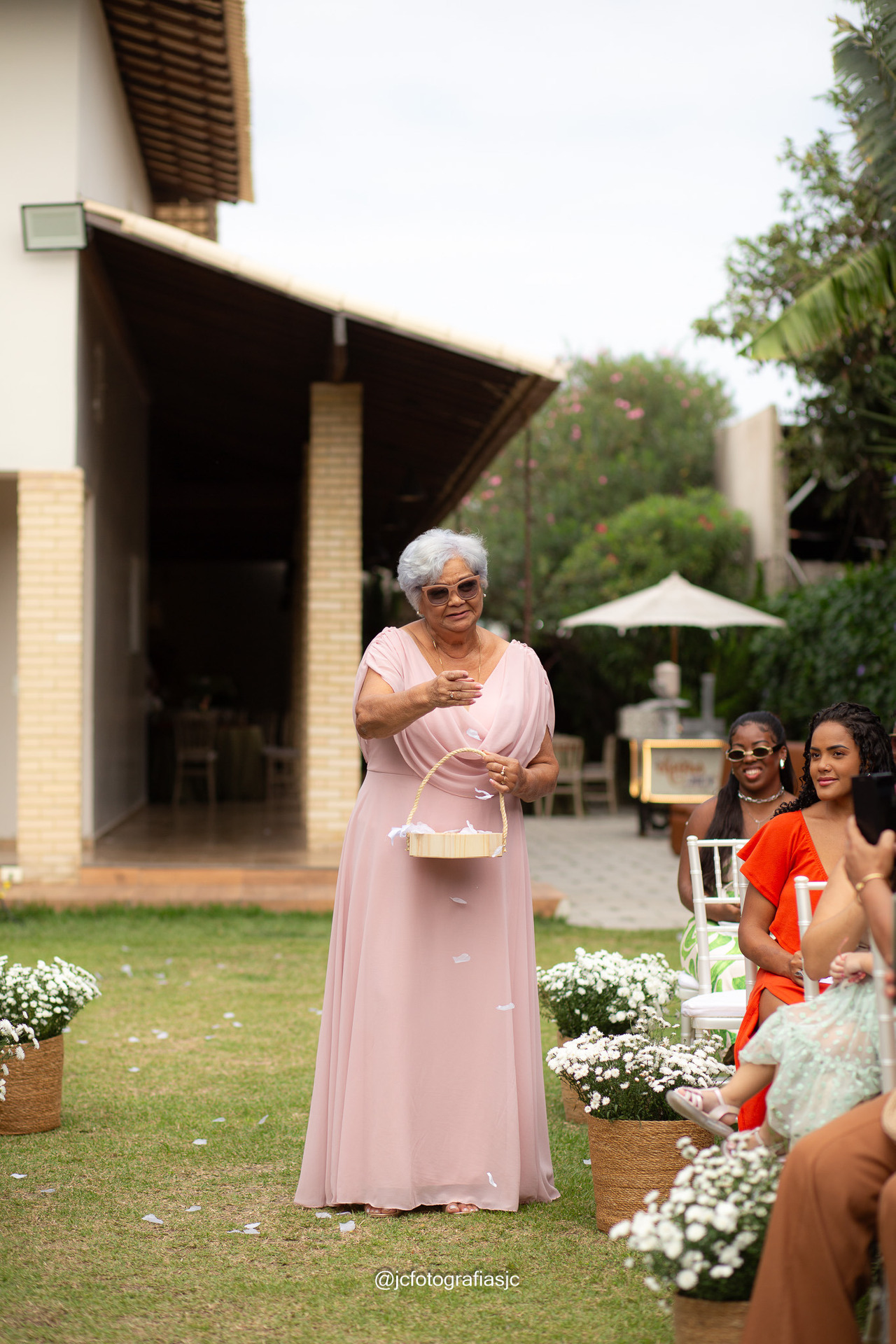 A cerimônia começou de forma clássica, com o cortejo tradicional dos padrinhos cada casal trazendo consigo sorrisos, e a energia boa de quem estava ali para celebrar o amor.