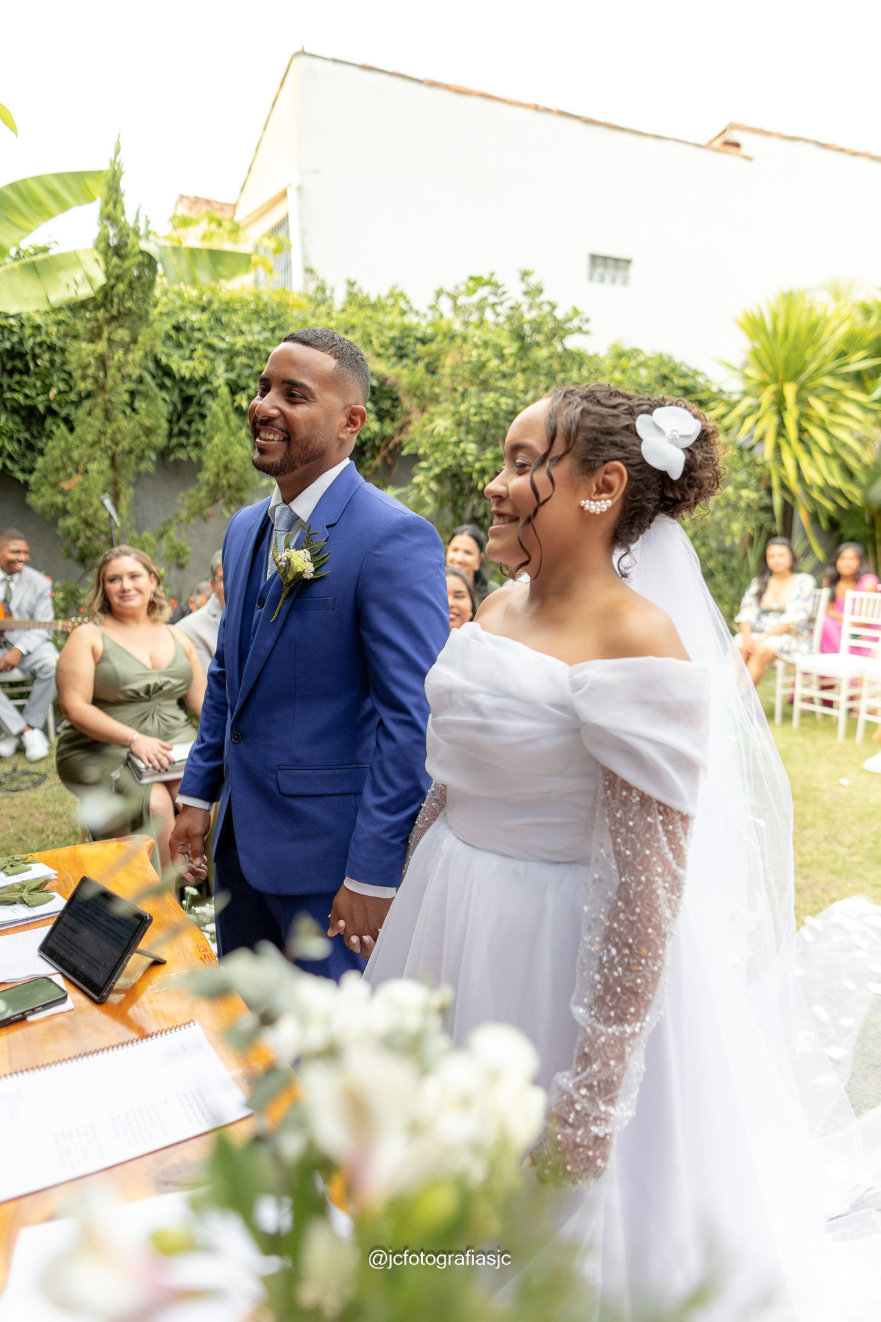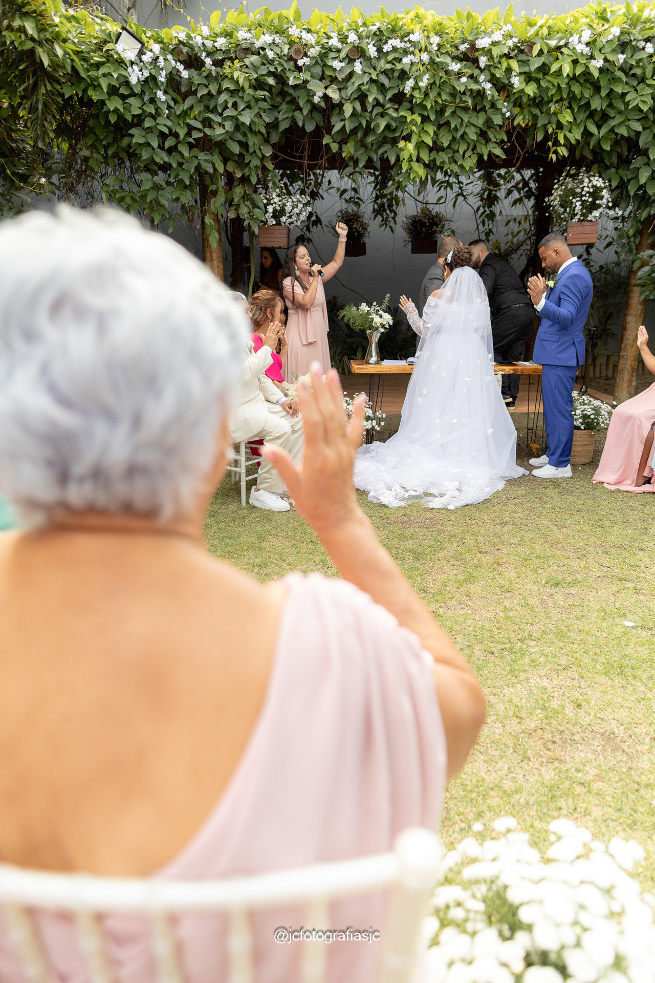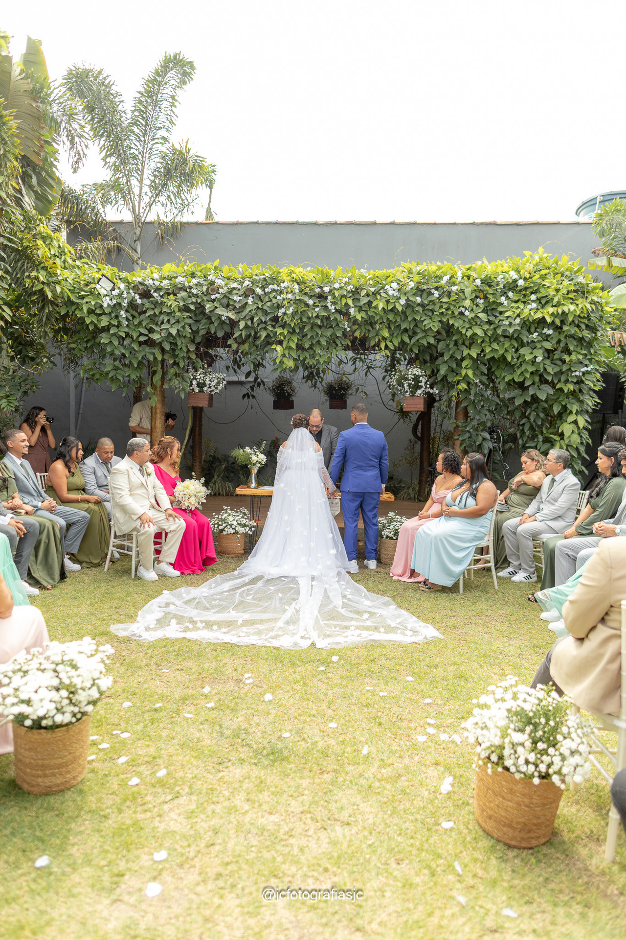 Logo após, veio a troca de alianças, o símbolo eterno, e os votos, ditos com o coração. Palavras que carregavam memórias, promessas e o amor vivido até ali