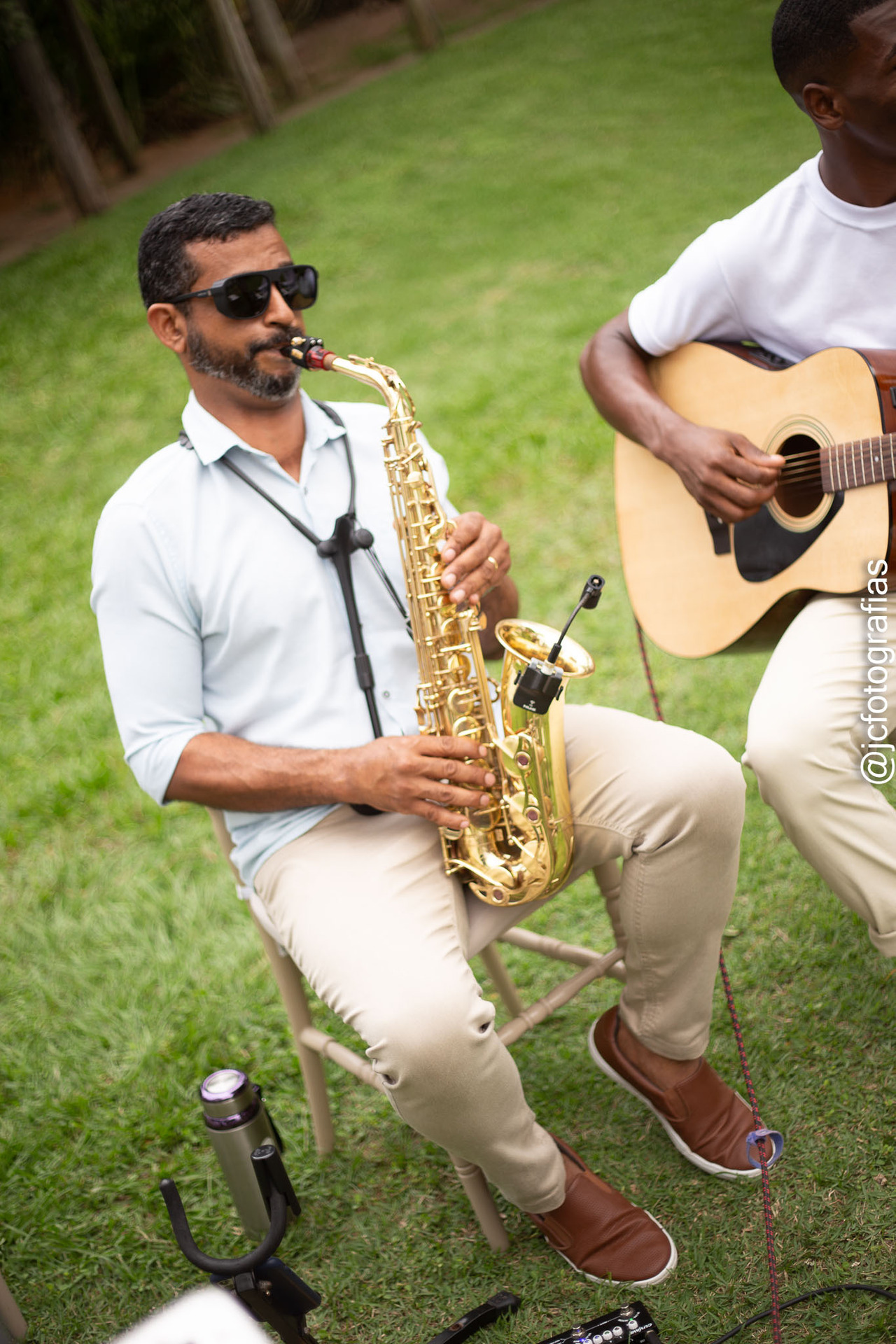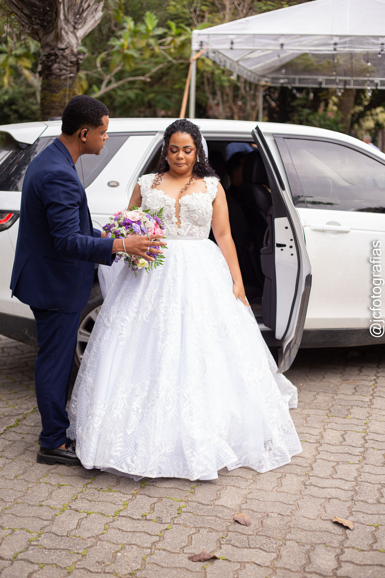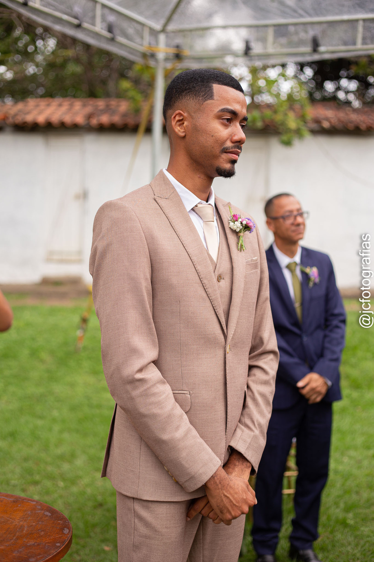A cerimônia aconteceu no Espaço Boa Vista, em Rio das Ostras, sob a luz suave do entardecer, escolha perfeita para quem sonha com fotos naturais e uma atmosfera acolhedora.