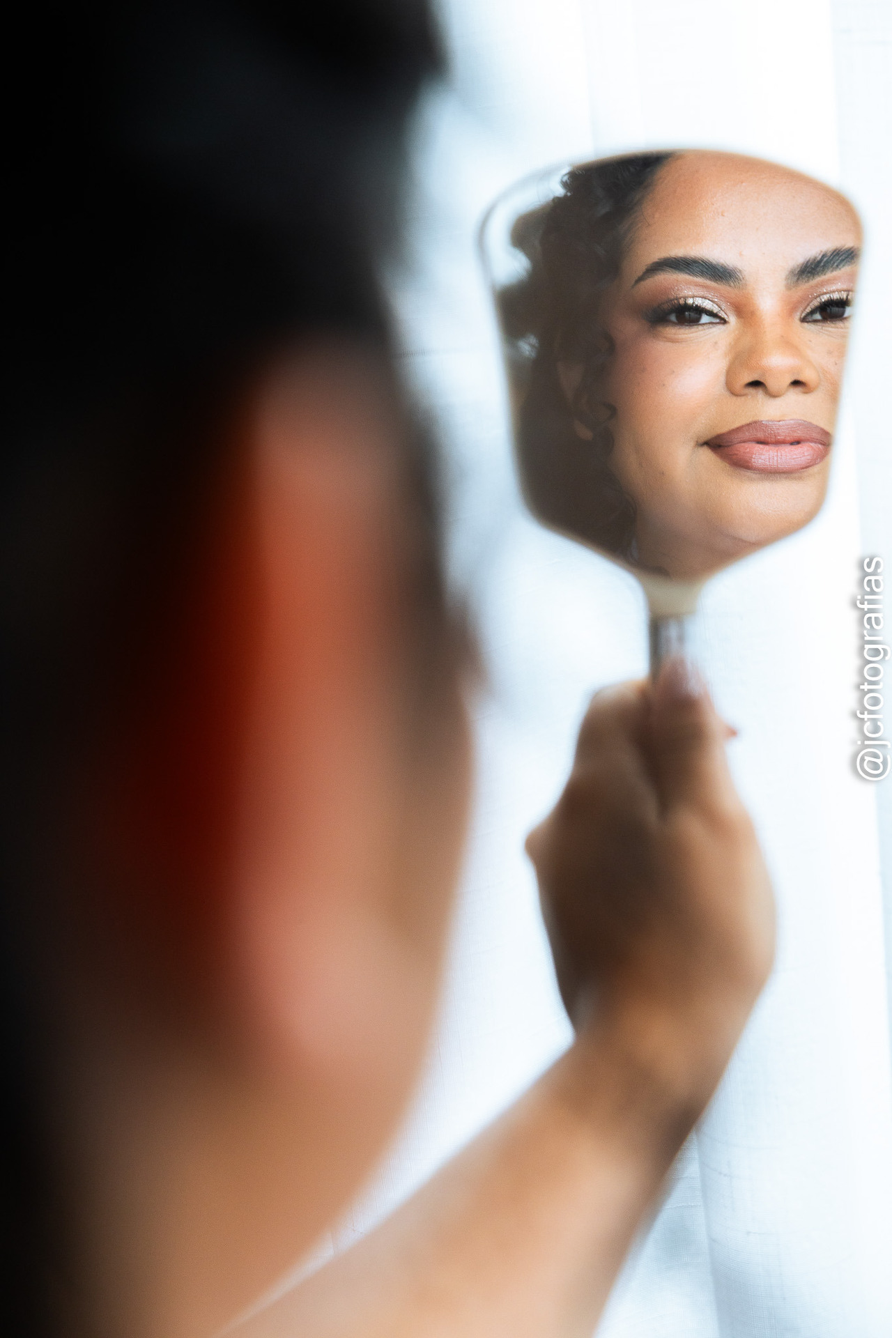 O making of da Mycaelle foi marcado por escolhas elegantes e atemporais: vestido clássico, acessórios delicados e uma beleza natural que refletia sua essência. Após as fotos de roupão, vieram os retratos já pronta.