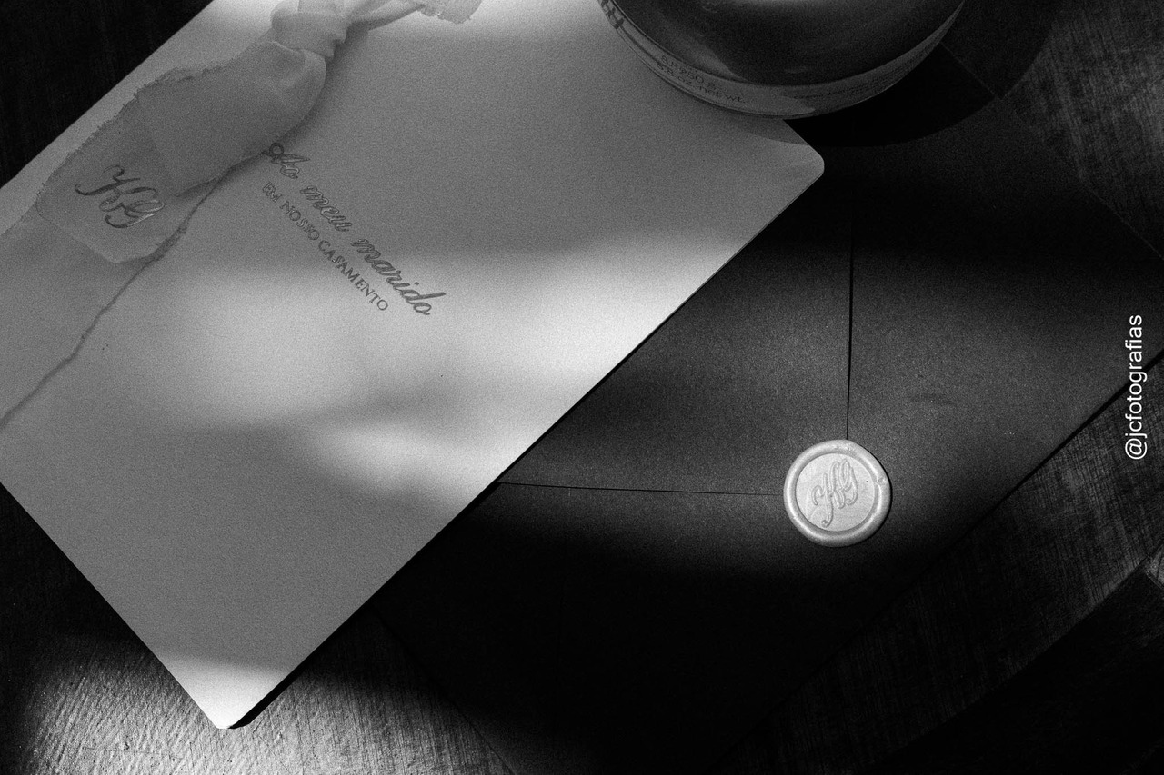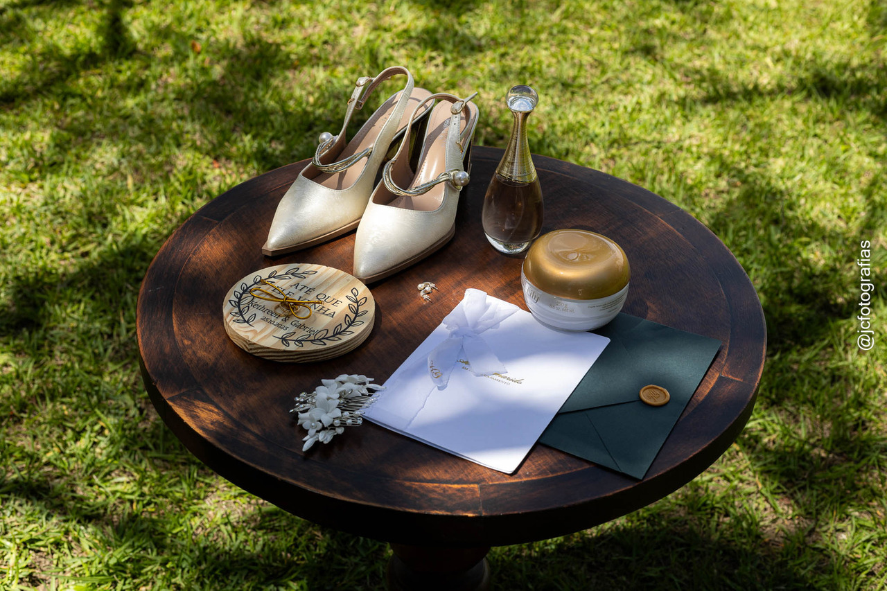 Nossa equipe iniciou o trabalho com os detalhes, os acessórios, o perfume, o vestido, o terno e todos os elementos que traduzem a essência do casal.