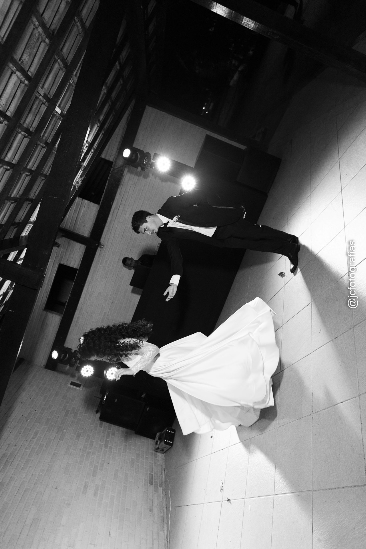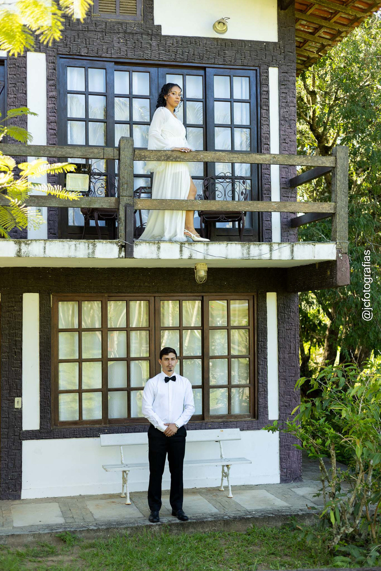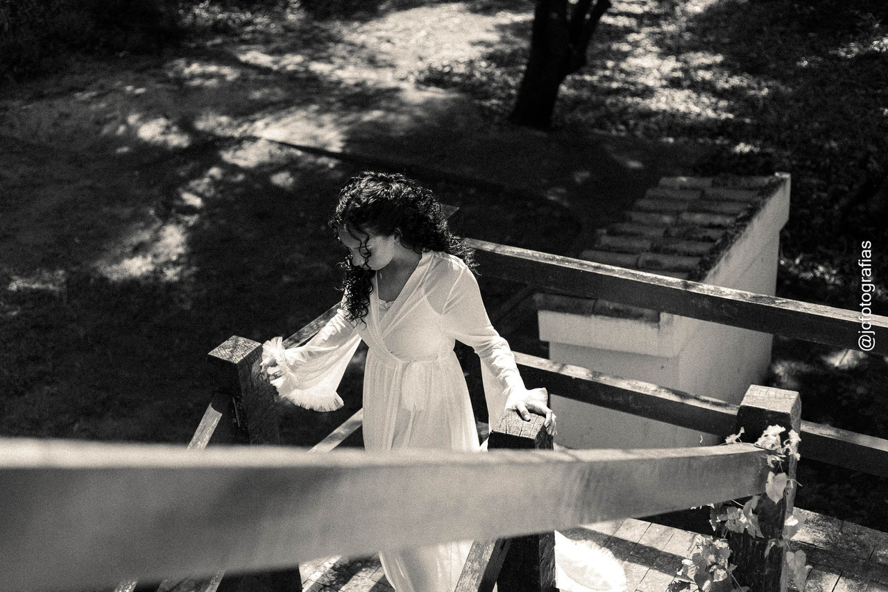 De forma criativa, fotografamos os dois, ela no andar superior, ele no térreo em uma composição que simboliza o encontro prestes a acontecer, sem que se vissem antes da cerimônia.