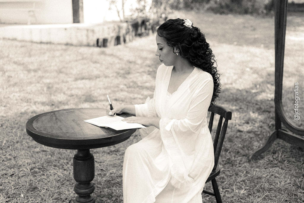 E não poderia ser diferente. Kethreen é uma noiva detalhista, elegante e de personalidade marcante. Cada escolha refletia seu bom gosto: desde o penteado e os acessórios até o livro de votos personalizado e a caneta especial escolhida para esse momento. Tivemos a alegria de registrar o instante em que ela passava seus votos à mão.