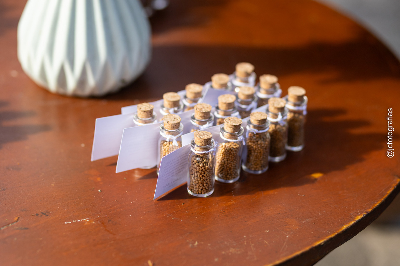 Cada elemento tinha propósito: desde o arranjo das mesas até as lembranças dos convidados pequenos vidros de mostarda.