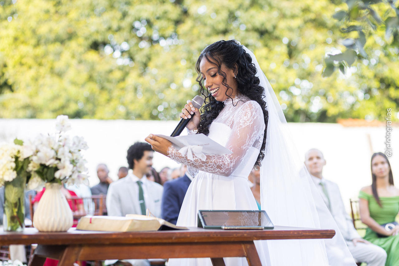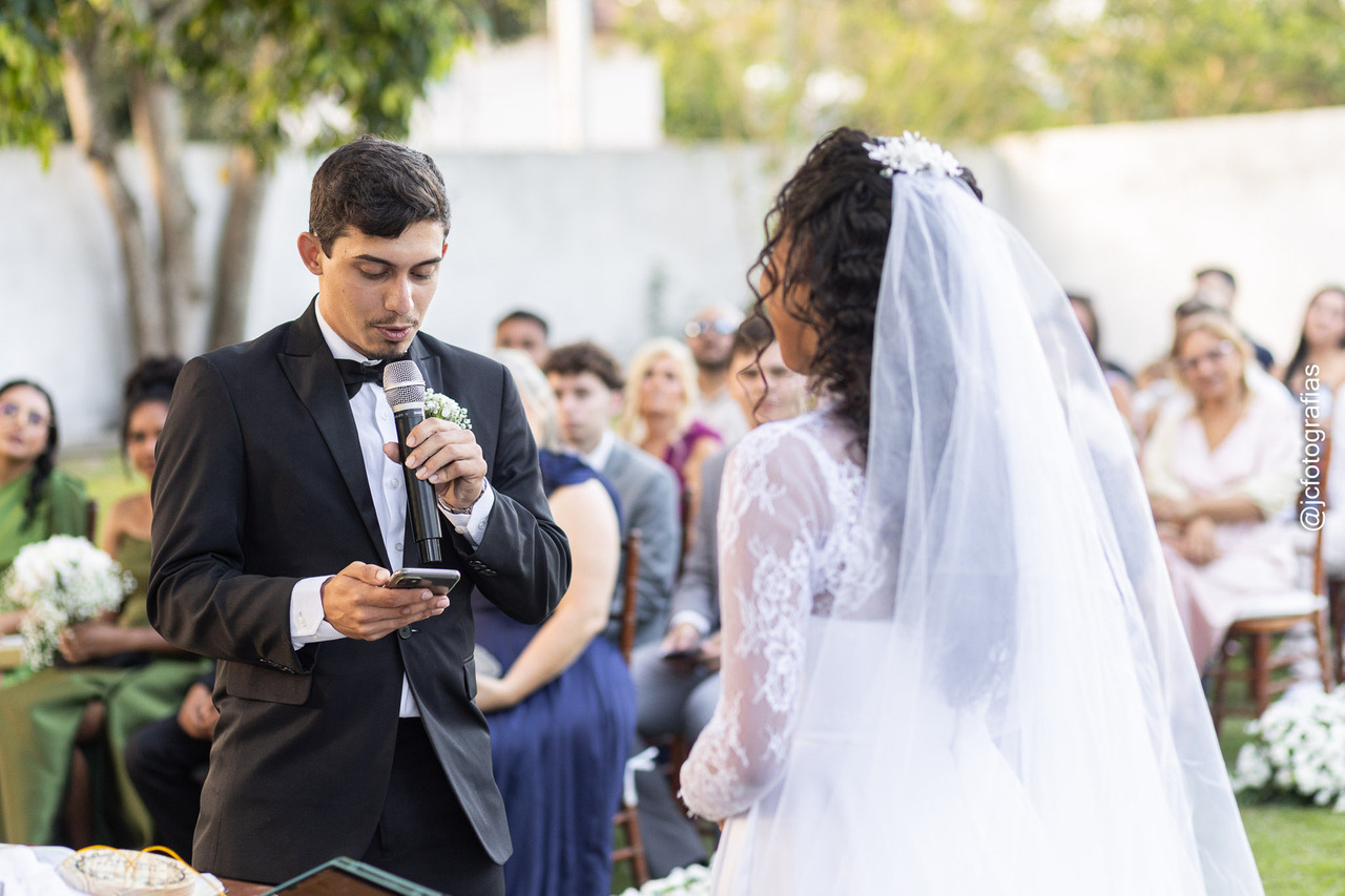 Logo após, veio um dos momentos mais marcantes da noite: os votos personalizados. Kethreen e Gabriel expressaram em palavras o que o tempo e as experiências moldaram entre eles, um amor que enfrentou a distância, amadureceu e se tornou mais forte. Foi impossível conter a emoção.