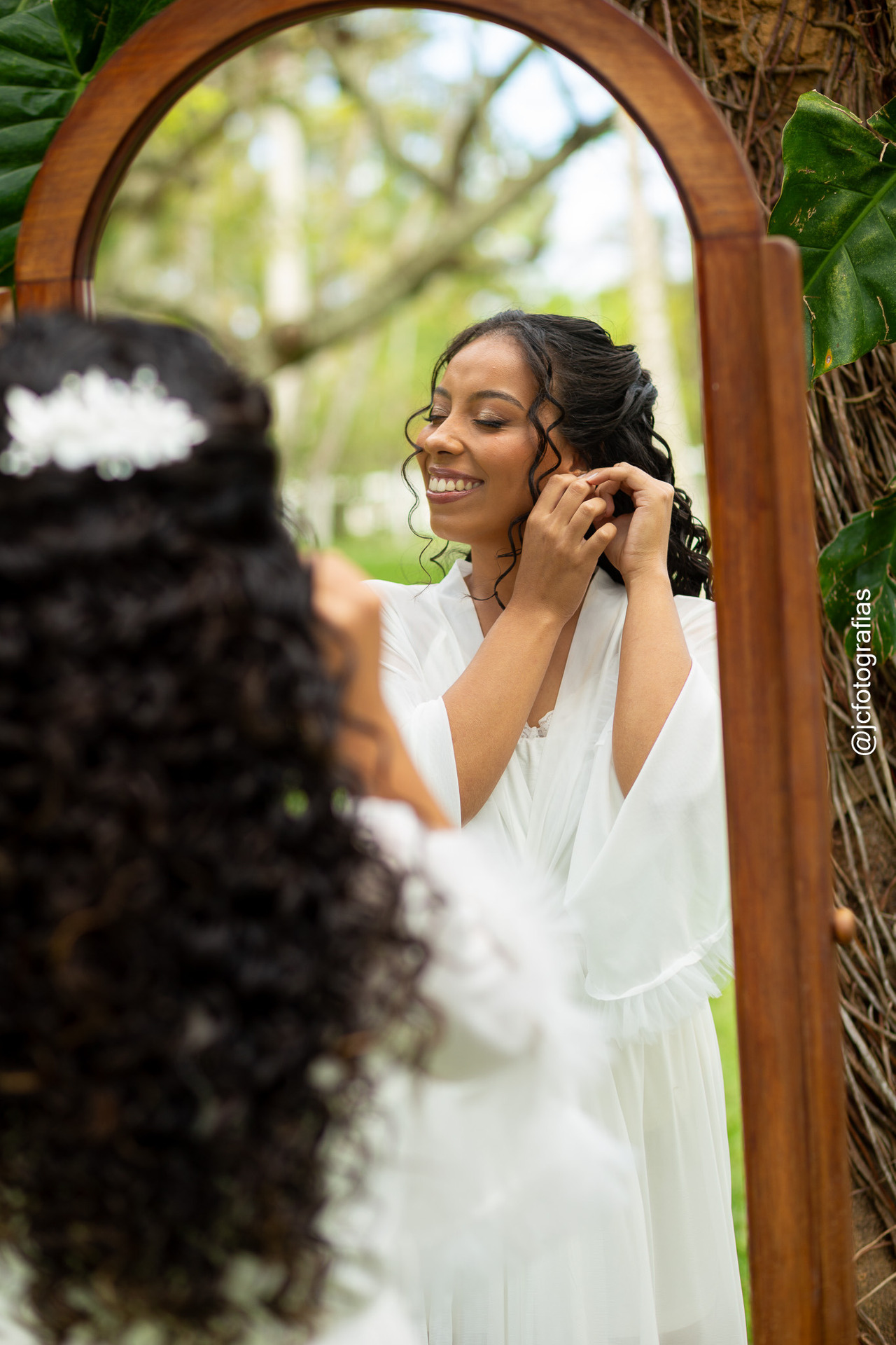 Antes de seguir para cerimônia registramos os últimos detalhes da preparação da noiva.