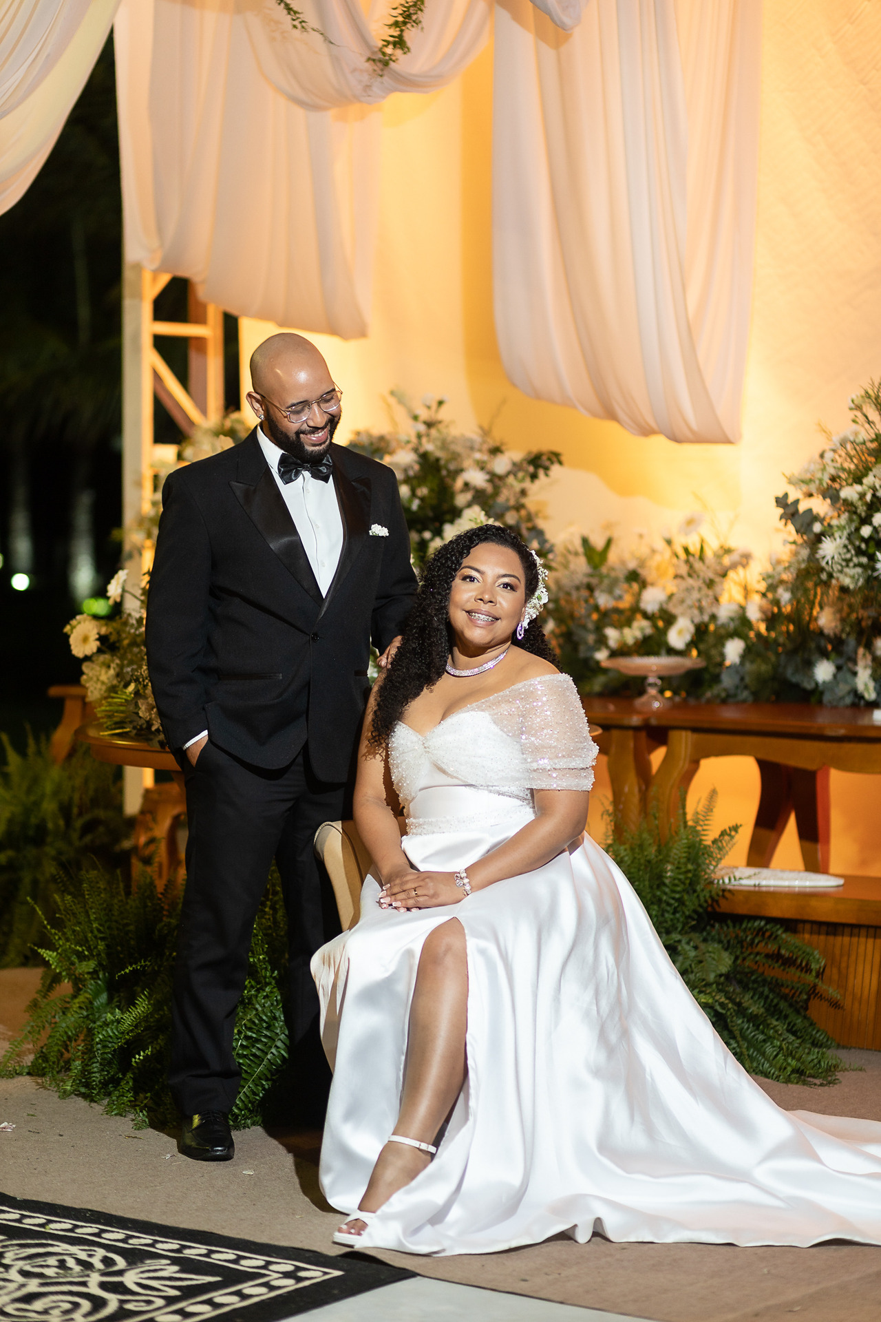 Em seguida, fizemos uma pequena sessão descontraída com o casal, rindo, celebrando e curtindo esse intervalo mágico antes da festa ganhar força. Logo depois, eles se retiraram para fazer a refeição e retornaram prontos para iniciar o protocolo da recepção.