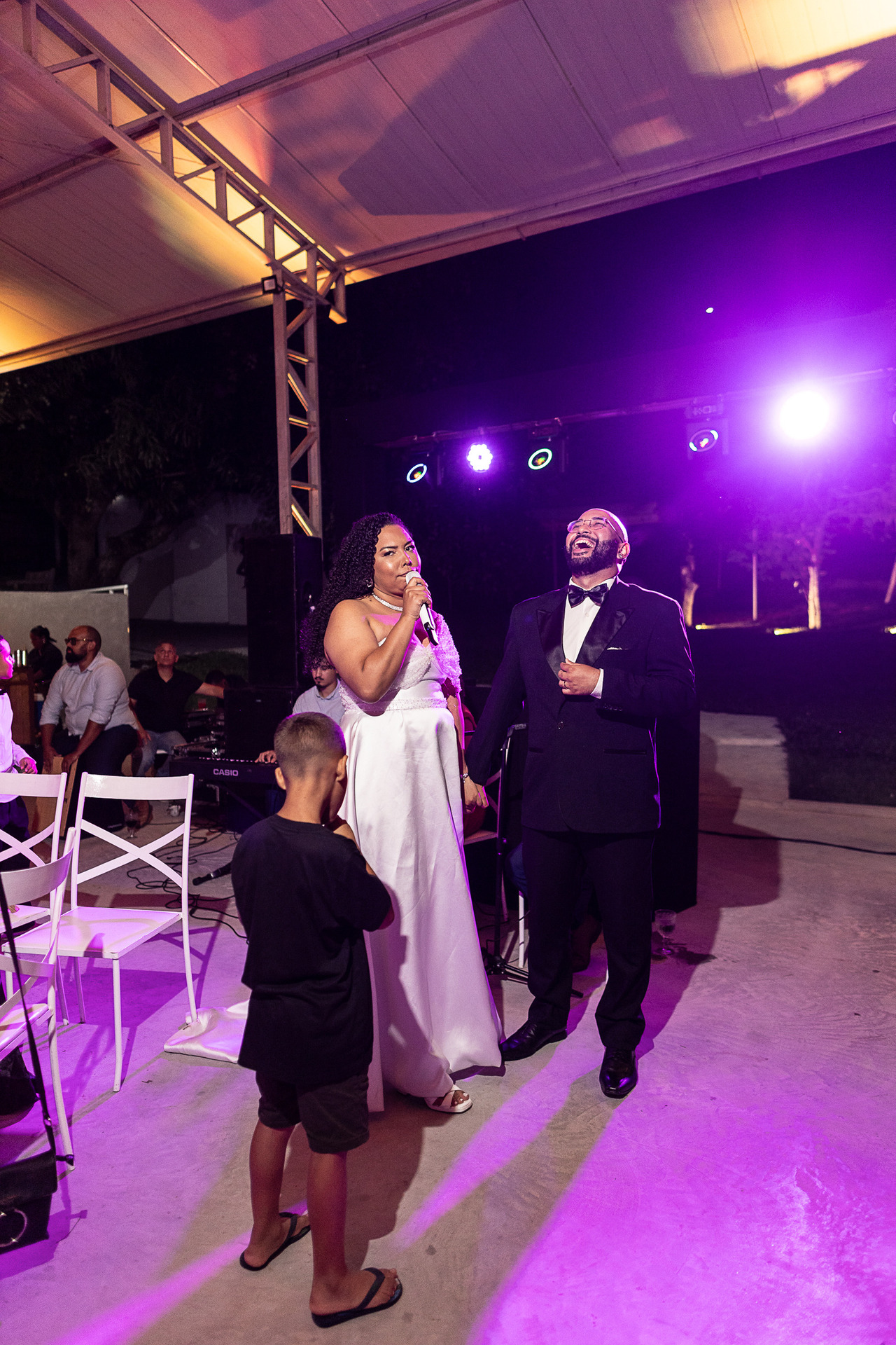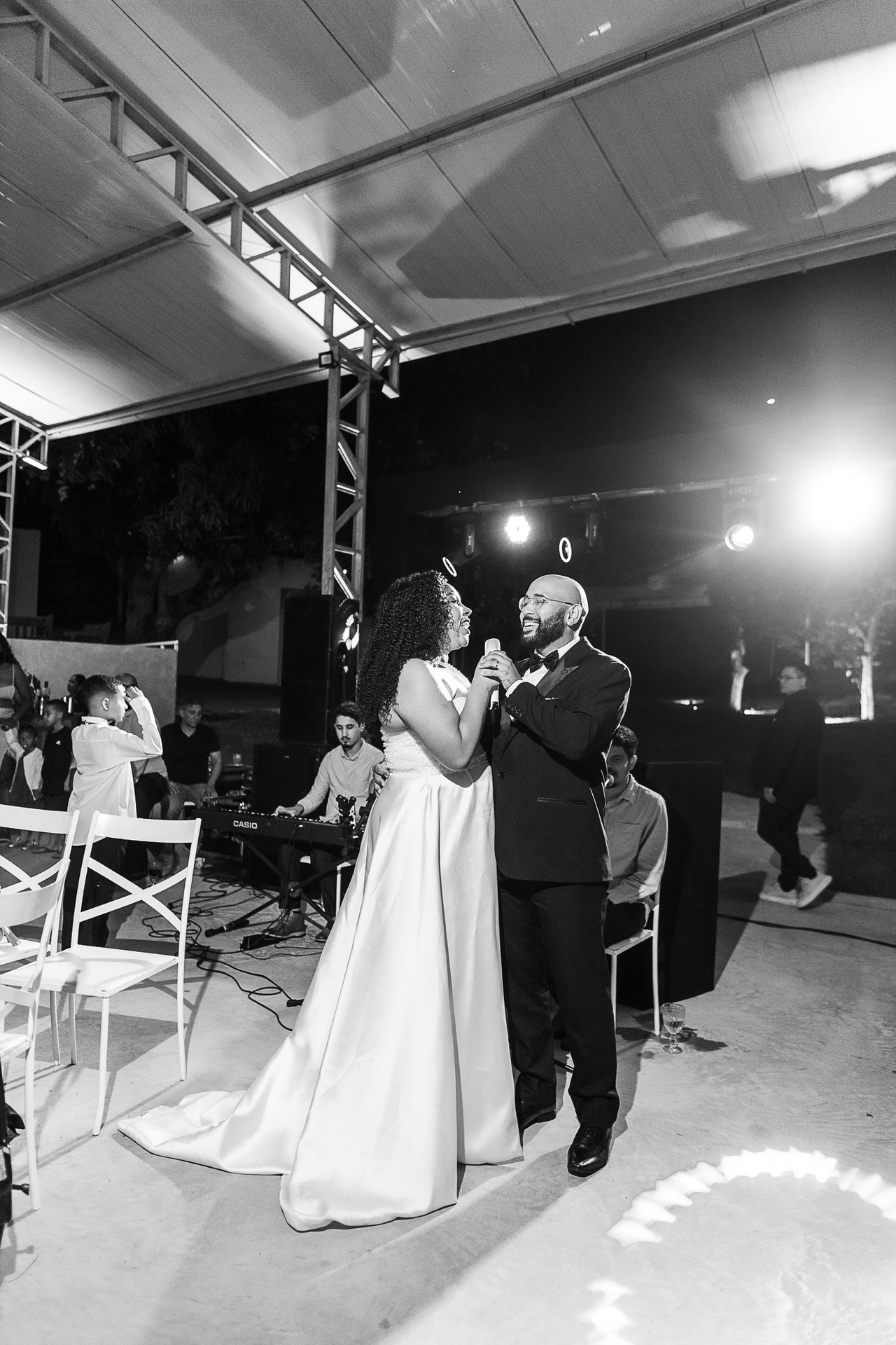 Depois da Trend, o casal ficou livre para aproveitar a pista. Foi então que veio a surpresa da noite: a Bruna cantou para o Tiago. Ele não resistiu, se juntou a ela, e os dois dividiram o microfone em um momento leve, íntimo e cheio de alegria daqueles que todo fotógrafo ama registrar.