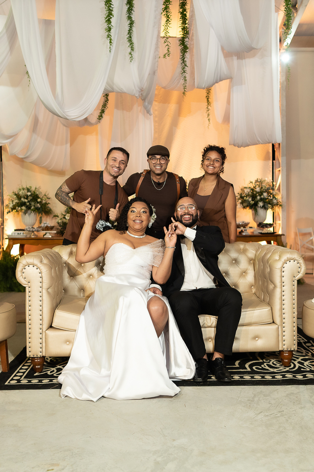 Entre uma música e outra, eles aproveitaram a cabine fotográfica da festa, fazendo fotos instantâneas com amigos e familiares, criando lembranças que eles já levaram para casa no próprio dia.