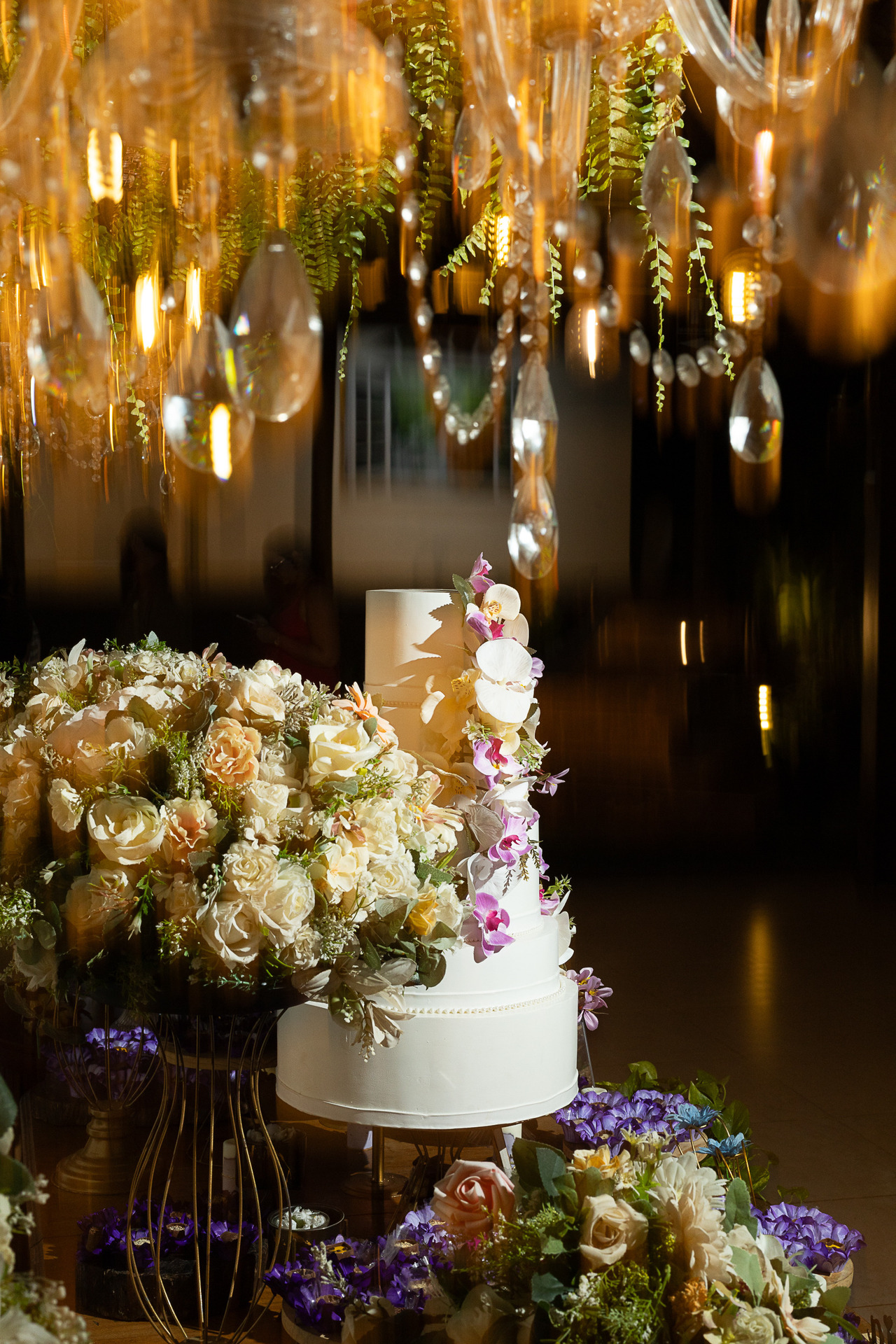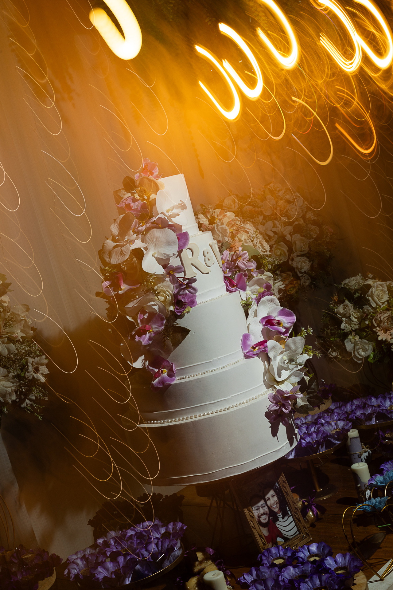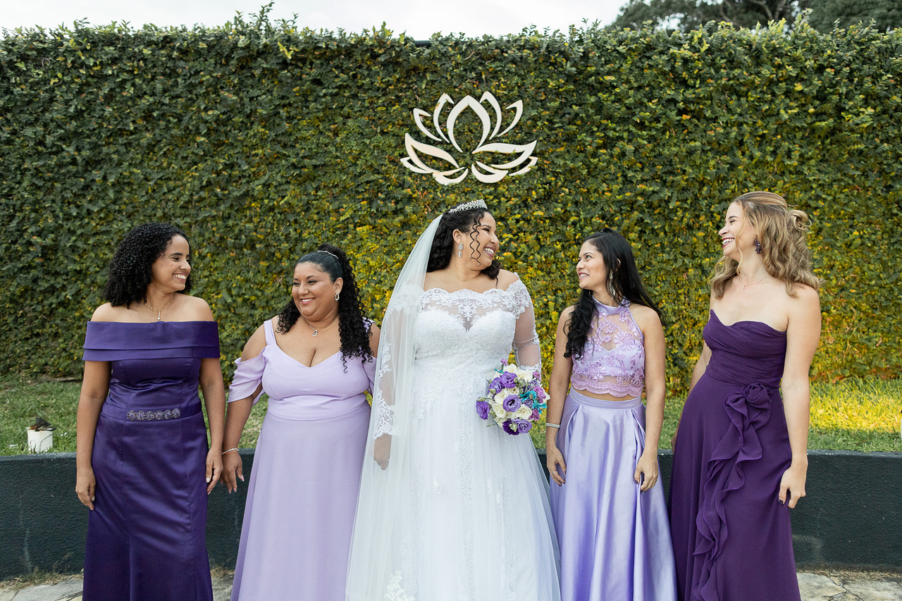 Ainda nessa etapa e de roupão a noiva recebeu sua decoração, a paleta escolhida pela noiva foi um destaque: tons de lavanda, lilás e roxo, uma composição harmônica que apareceu em vários pontos do casamento: