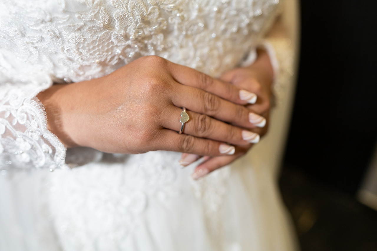 Um Detalhe que Carregava Memória: Vanessa usava um anel de prata com um coração escrito “pai”, uma homenagem afetiva que representava a presença emocional e espiritual do pai naquele dia tão importante. Esse tipo de simbolismo sempre guia nosso olhar documental.