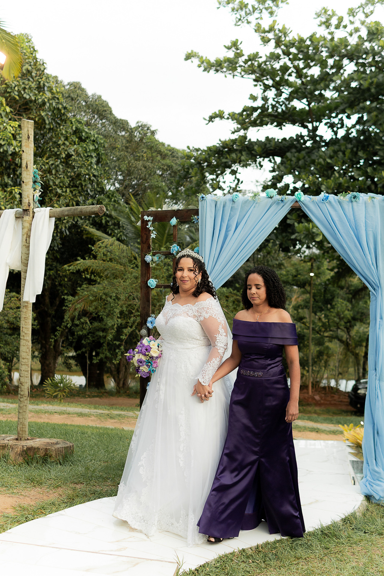 Mas o grande diferencial foi a entrada da noiva, que aconteceu ao lado de sua irmã, um gesto carregado de significado e identidade familiar.