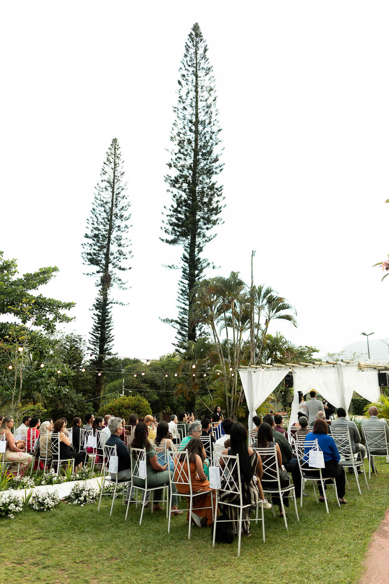 A celebração foi conduzida por um amigo, tornando tudo ainda mais íntimo e pessoal que descreveu a união dos dois como uma soma, onde cada um traz uma matéria prima única e insubstituível.
