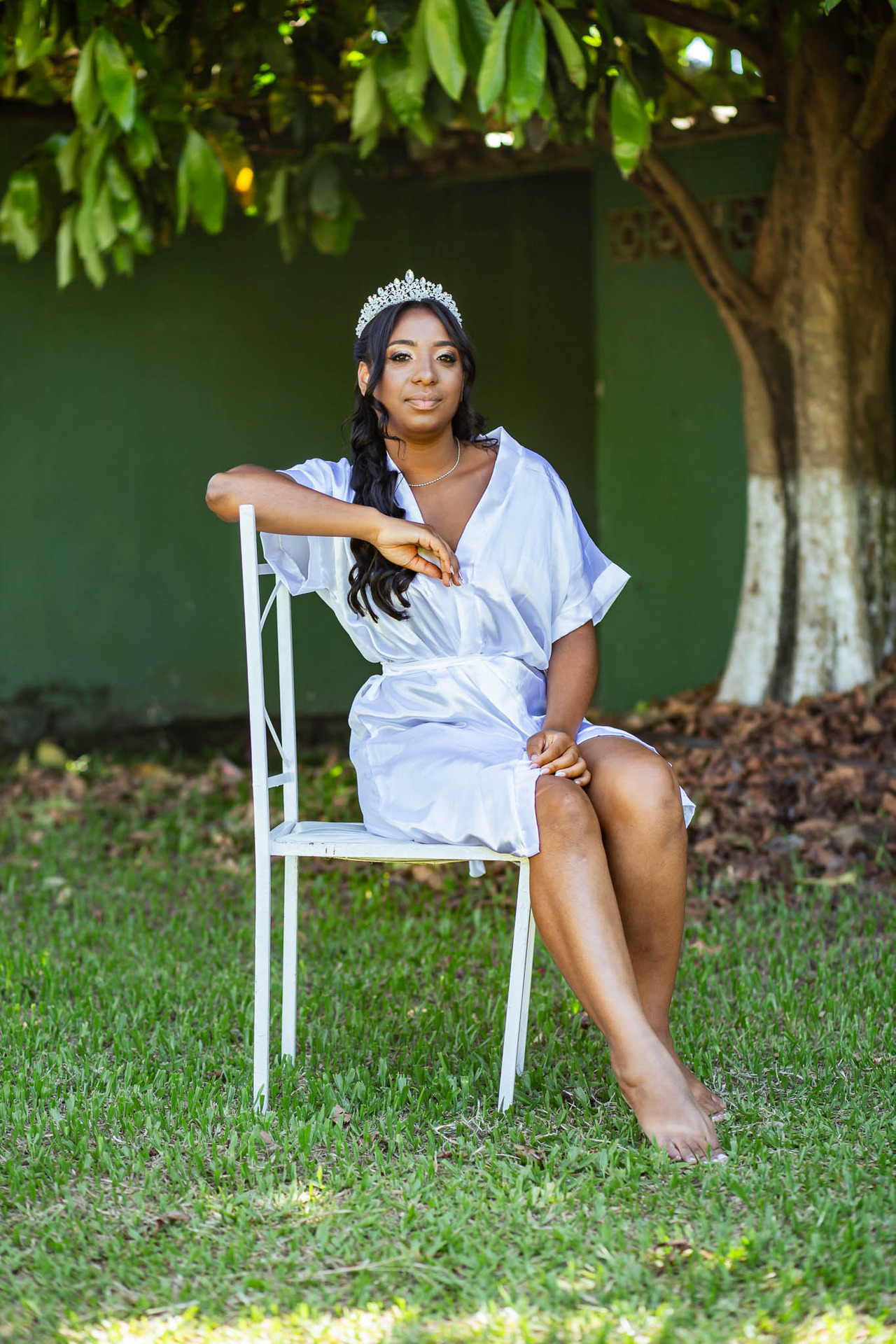 Após a produção de maquiagem, levamos a Rayane para a área externa do sítio, onde realizamos fotos externas da noiva, aproveitando a luz natural e o ambiente verde. Esses registros trouxeram leveza, beleza e autenticidade, marcas do nosso trabalho com fotografia de casamento natural e atemporal.