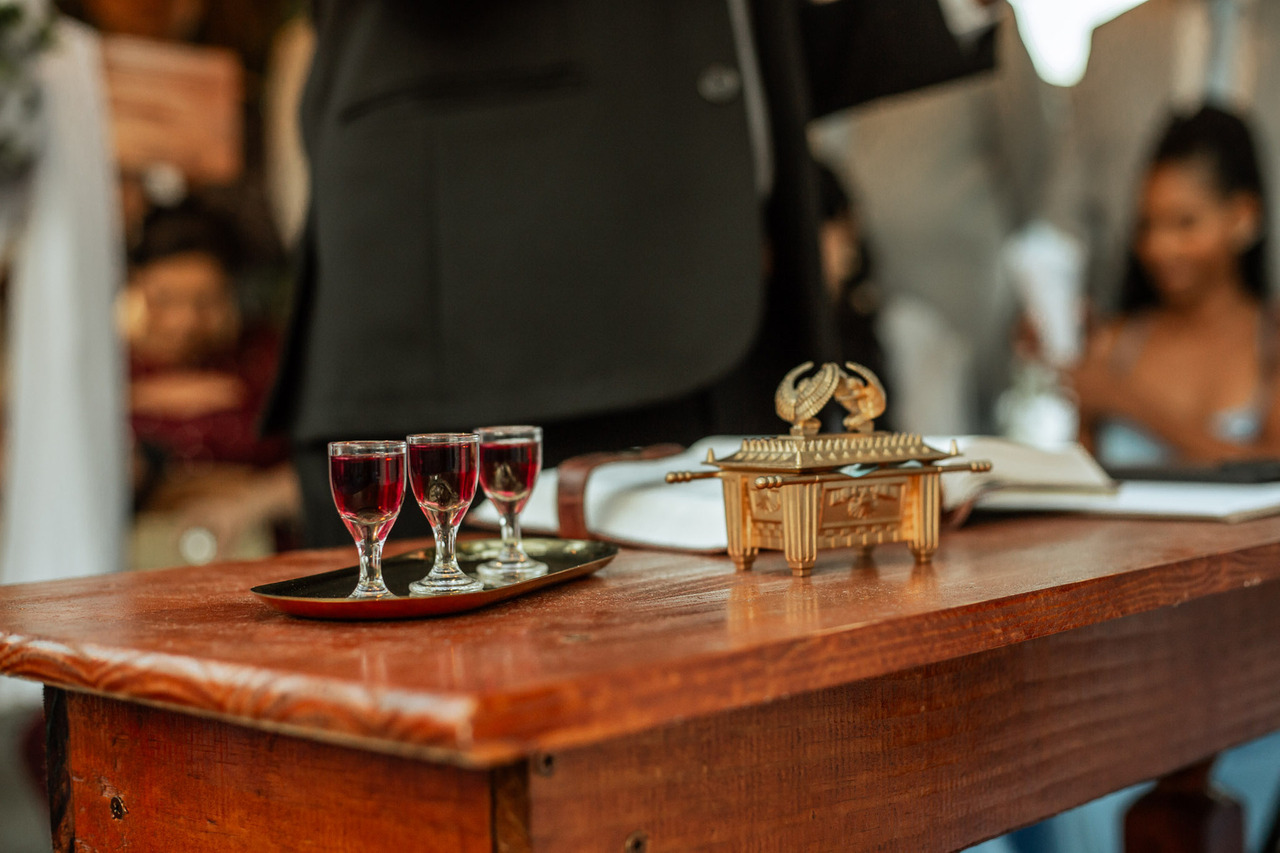 Os noivos também tiveram um momento de comunhão mais profunda ao celebrarem juntos a Santa Ceia.