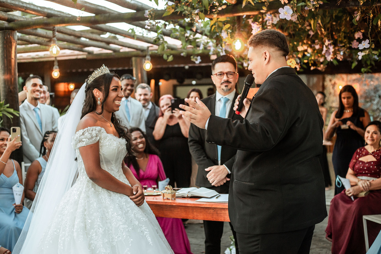 A cerimônia de casamento foi celebrada pelo pastor do casal e foi marcada por fé, alegria e brados de vitória. Rayane e Matheus trocaram votos personalizados, tornando o momento ainda mais verdadeiro e emocionante.