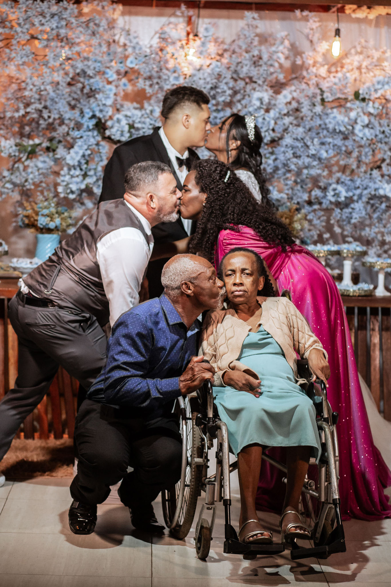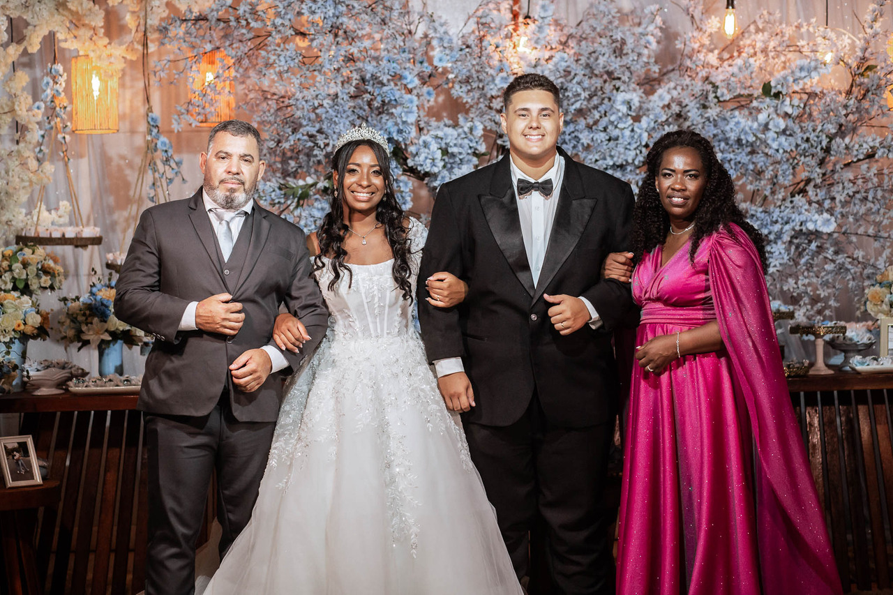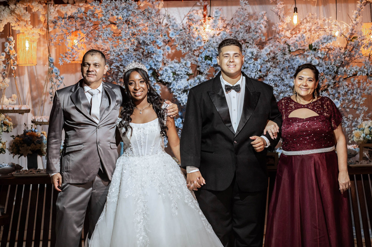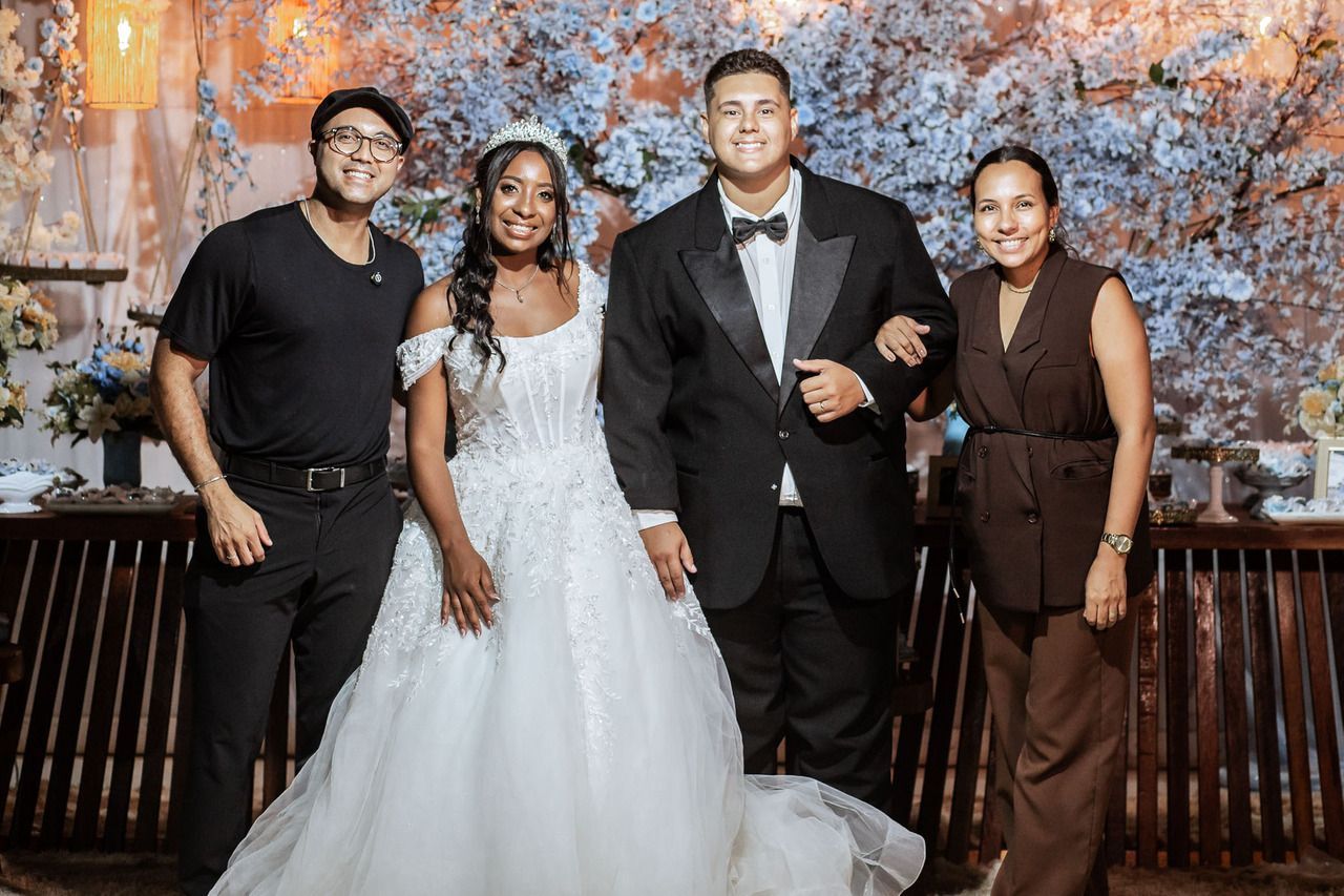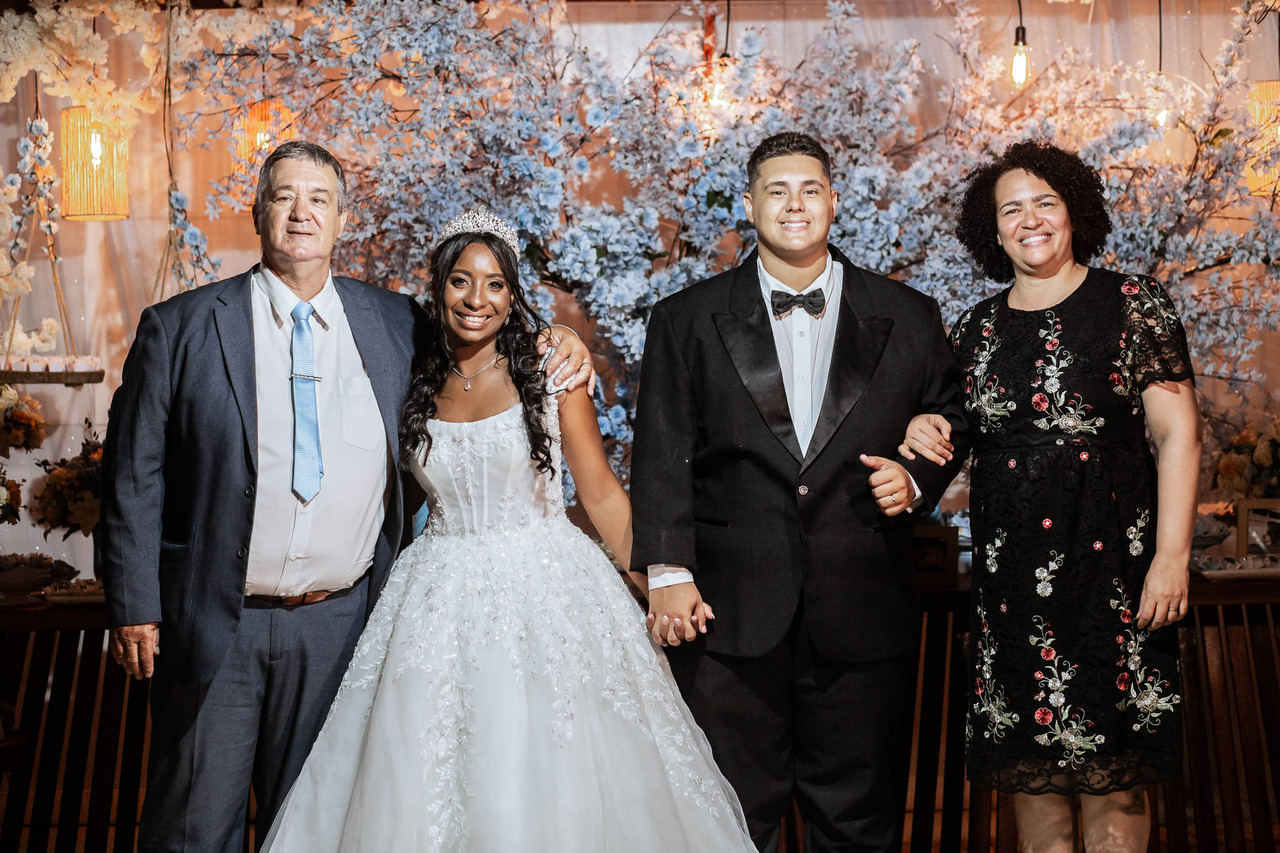 Entre tantos registros marcantes, um se destacou: a foto geracional, com os noivos se beijando ao lado dos pais e dos avós da noiva. Uma imagem clássica, cheia de significado, que representa aquilo que acreditamos: o amor firmado em Cristo atravessa gerações e permanece eterno.