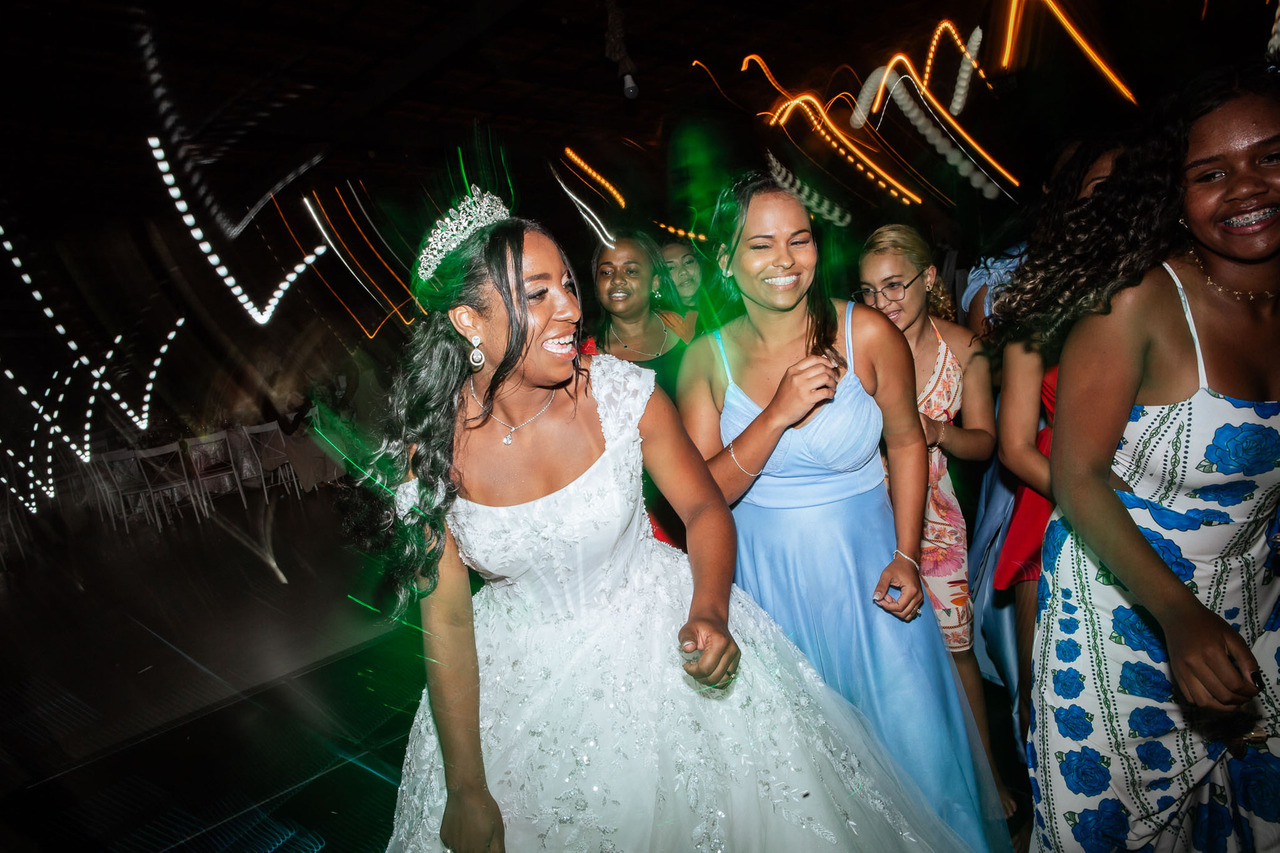 Rayane aproveitou intensamente a pista de dança, celebrando cada momento desse dia único.