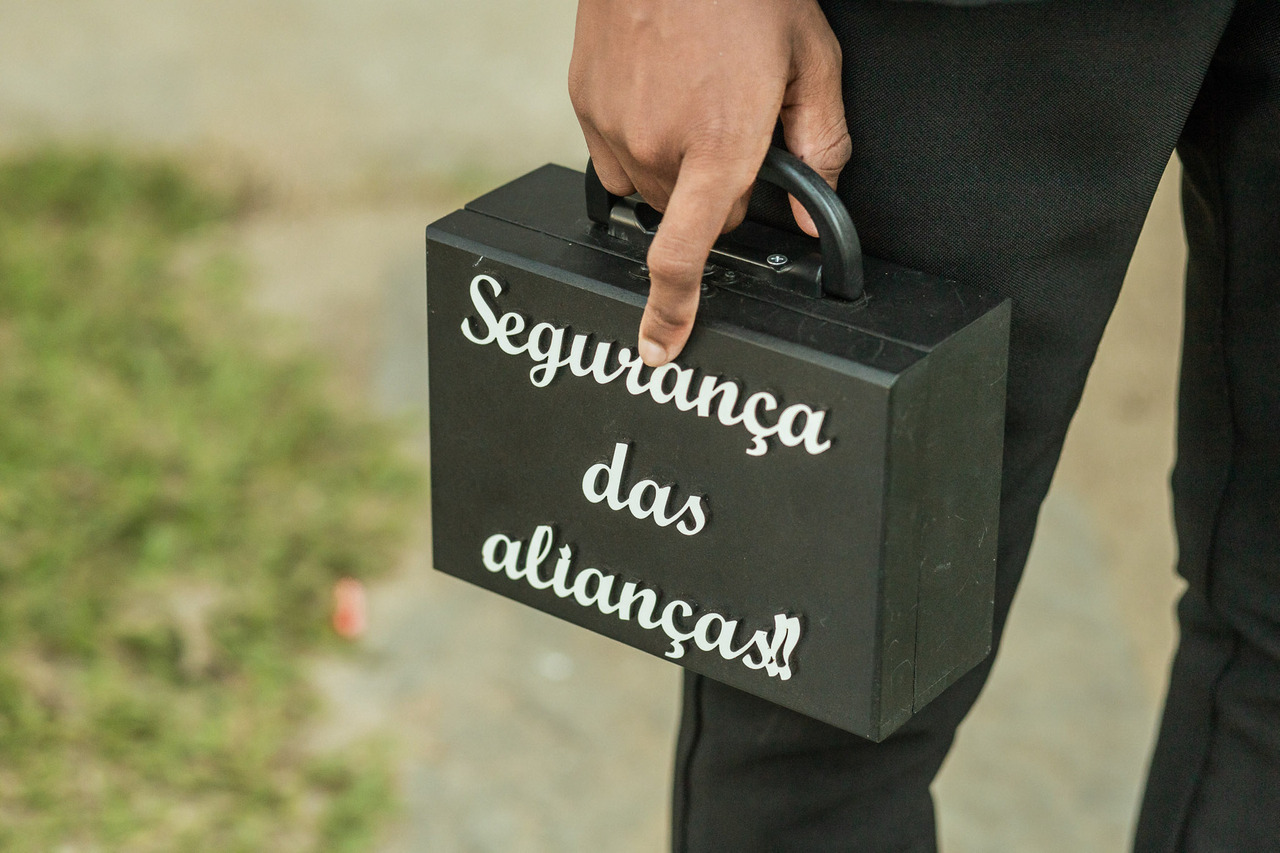 A entrada das alianças contou com um cuidado e segurança especial. Elas vieram dentro de uma mini arca da aliança.