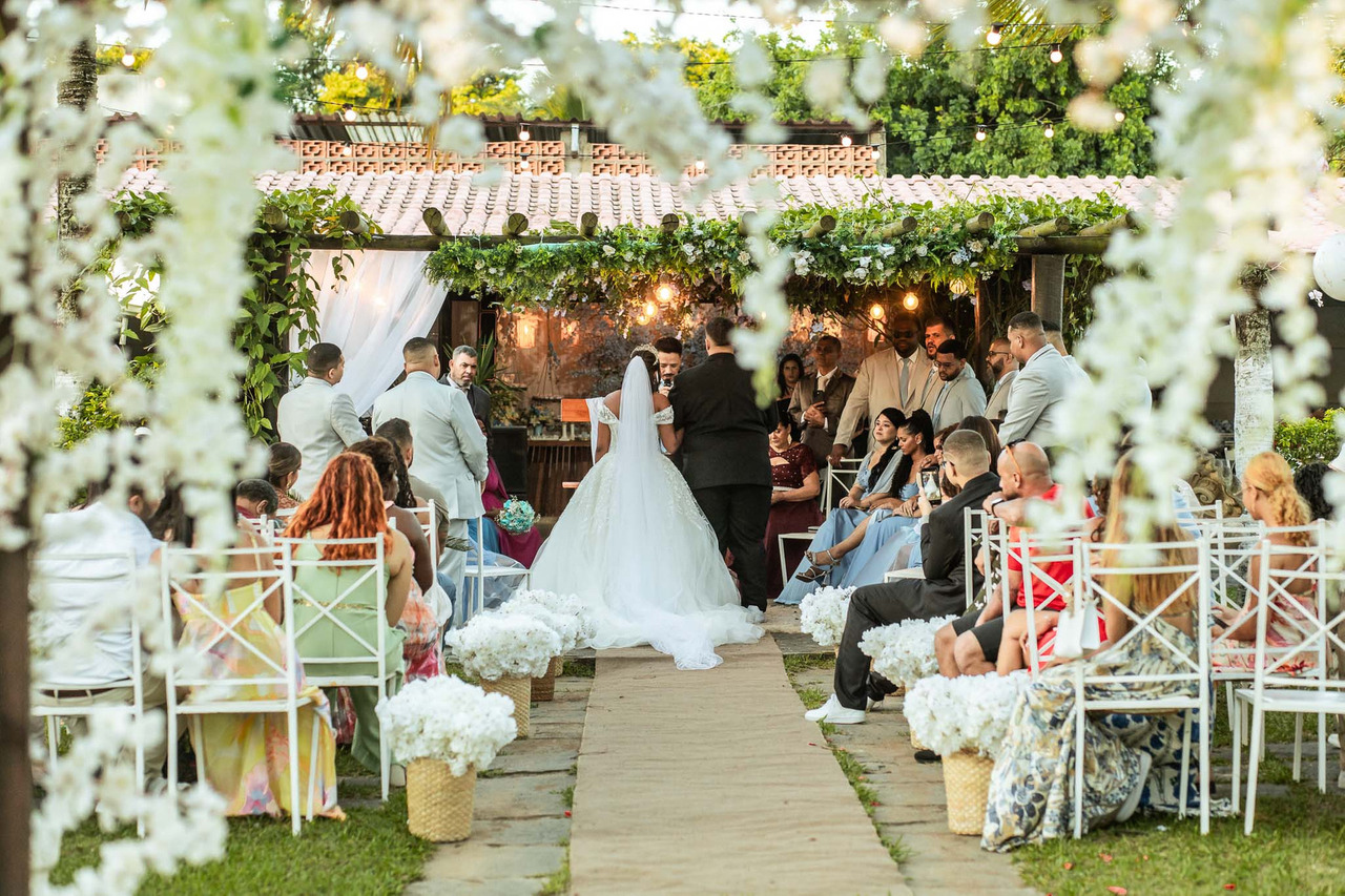 O casamento de Rayane e Matheus foi celebrado no início da tarde, estendendo-se até a noite, em um dia marcado por emoção, fé e significado. Toda a celebração aconteceu no Sítio Shalom, um espaço perfeito para quem busca um casamento ao ar livre e com natureza.